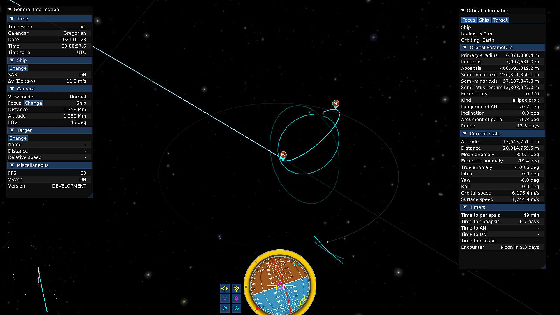 • realistic simulation of orbital dynamics using Kepler laws and patched conics