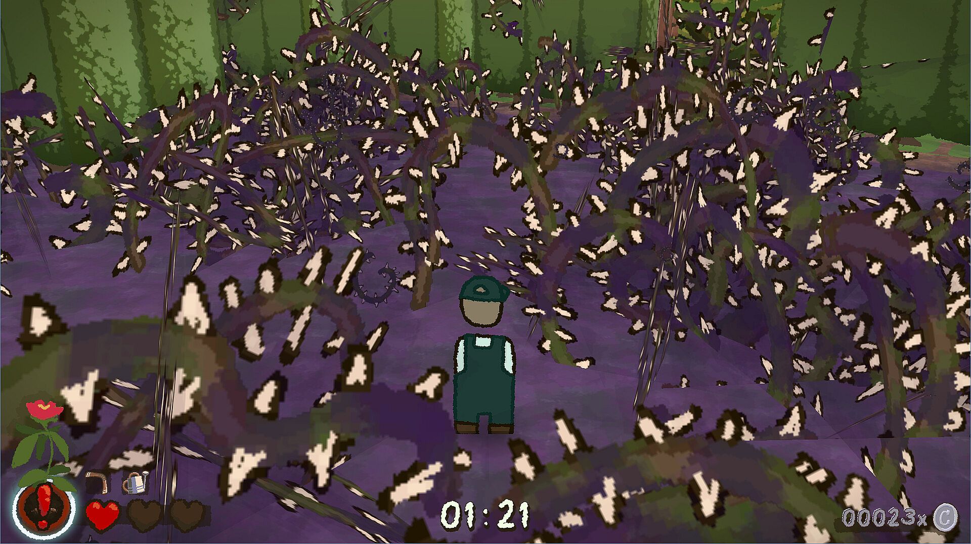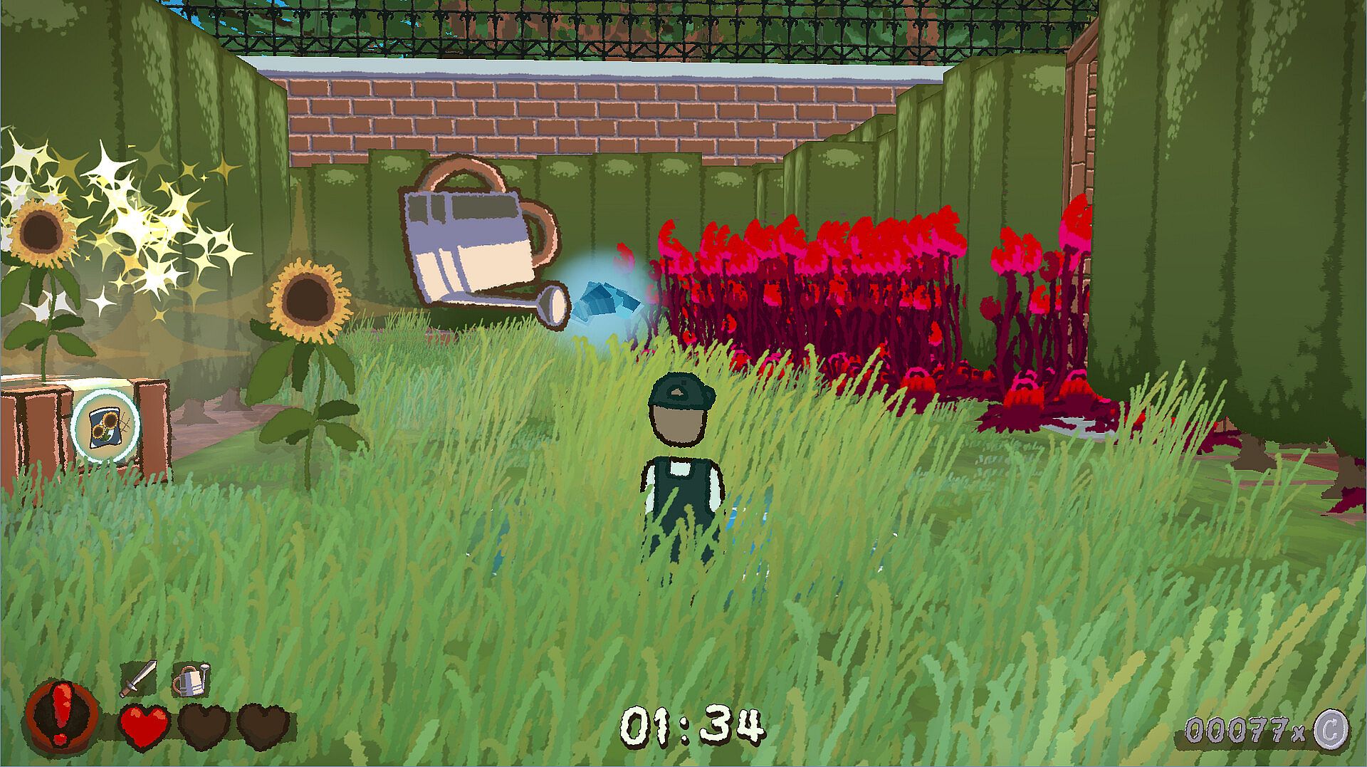 Legend of the Landscaper is a satisfying survival roguelike. You are a landscaper thrown into a hedge maze on a job for a bizarre mansion homeowner, equipped with nothing but a sword and a watering can. Mow down enemies as you mow down grass, gathering boons from the flowers you help along the way. Gather as much coin as you can before the maze inevitably tosses you out so that you may buy upgrades to help in your next attempt