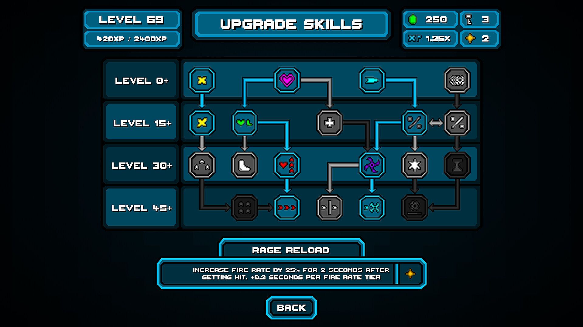 Progress through the skill trees to unlock skills that will permanently increase your strength and unlock new capabilities.