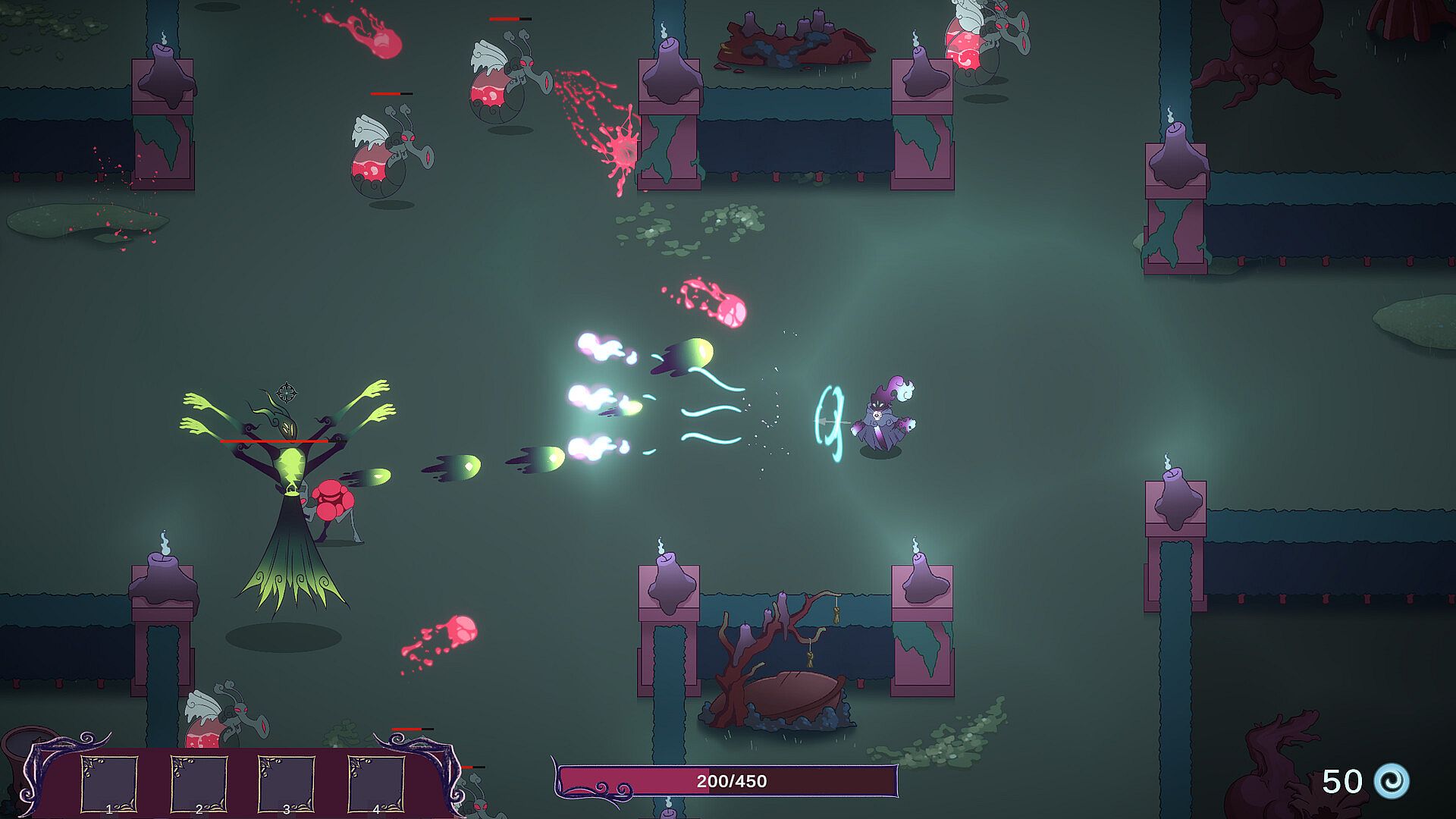Discover the hand-drawn world of the afterlife - the Spirit Realm - and set out to free its inhabitants of the ever-spreading influence of the Lich. Slash, dash, and shoot your way through the twisting paths and halls of the Lich's domain. Defeat enemies and become stronger, then make your enemies stronger to then become even more powerful yourself. Evolve your strategies and venture forth, until you finally defeat the Lich and break his all-controlling curse.