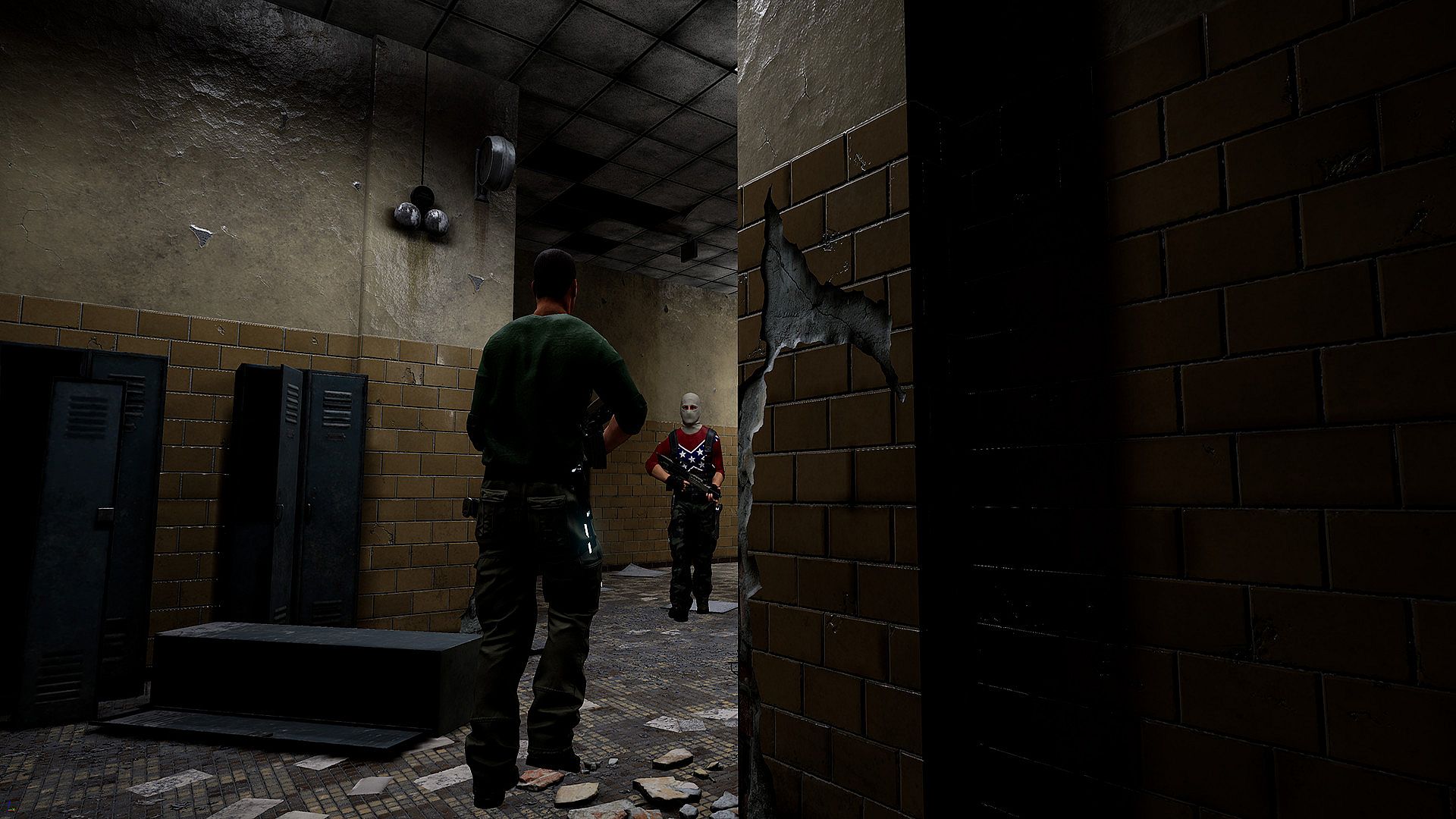 There are three types of AI right now that all have realistic looking models. The soldier/terrorists are able to patrol an area that can detect you by either sight or sound. They will work together to try and take you down so you will hear them issue commands to each other. They will retreat if you overwhelm them or advance on you if they feel they have the advantage. The second type is the more classic type zombie that will roam an area and attack you if they sense you. If one sees you the others will be altered by the way their behavior changes so you will have only a split second to act if you are discovered because very quickly you could have over 300 zombies chasing you. The third type is experimental and it is to get the most realistic physics experience while you are interacting with them so if you punch them in the face you will see bruises appear. If you shoot them in the hand or say the head it will detach and blood will splatter onto the ground.