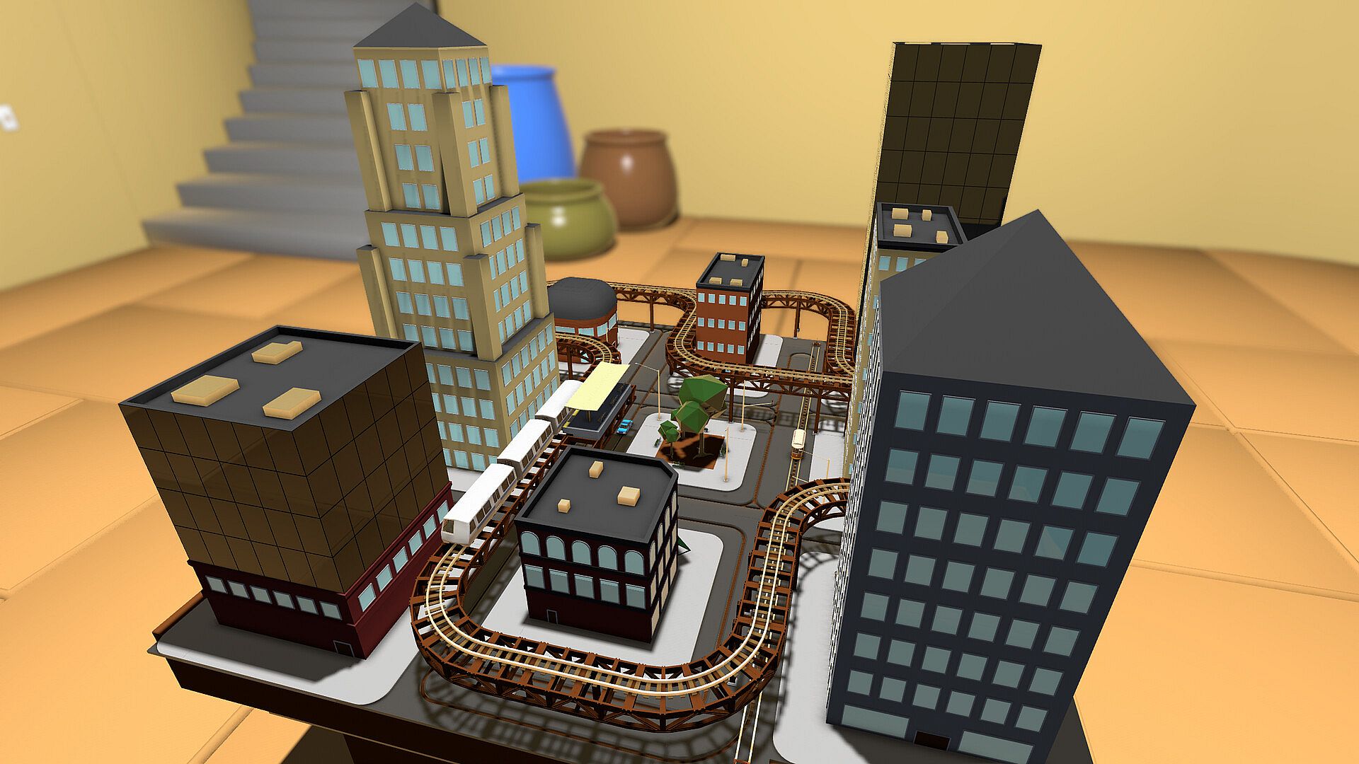 Baue in dieser entspannten Simulation für touchfähige SteamVR-Headsets Stück für Stück aufwendige Modelleisenbahn-Anlagen. Greif dir Geradstrecken, Kurven, Steigungen, Loopings und Deko-Elemente, um Layouts zu kreieren, die die Gesetze der Physik ignorieren. Steuere Dampfloks und Dieselmaschinen per Fernbedienung über ein DC-Control-Panel - oder klettere ein und fahre mit echten Hebeln, Knöpfen und Reglern. Die Züge ziehen unterschiedliche Waggons, darunter einen funktionsfähigen Kanonenwagen, und gehen bei Kollisionen spektakulär in Flammen auf. Ergänze eigene Kreationen oder Community-Inhalte für unendliche Layout-Vielfalt. Dieser Spielzeugkasten-Simulator begeistert modellbahnbegeisterte Kids und Erwachsene mit Nostalgie an handfestes Basteln.