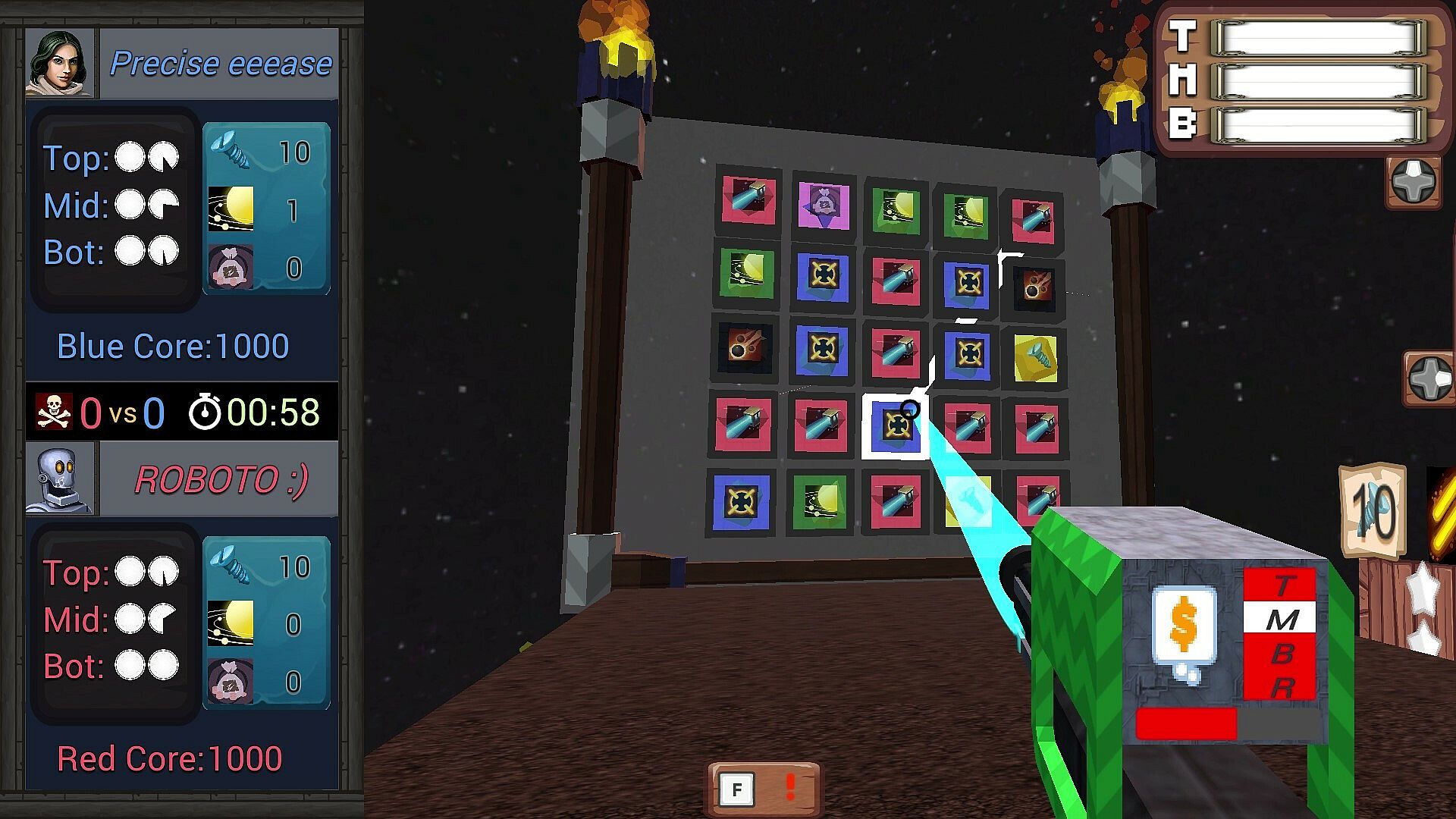 Each match3+ sends a minion down a chosen lane: Top, Bottom, Mid, and Jungle.