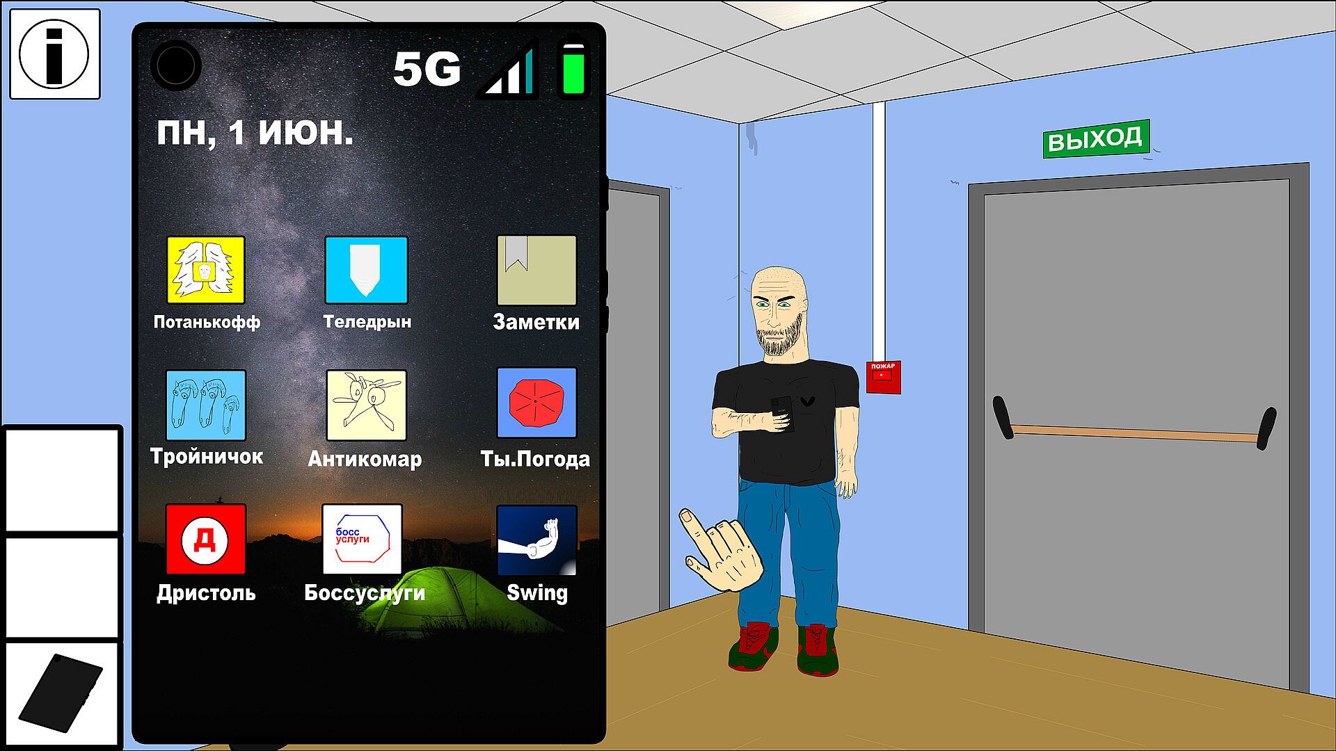 In the role of Oleg Mazapov, you will have to follow the path of making money and get out of the problems that stand in your way!