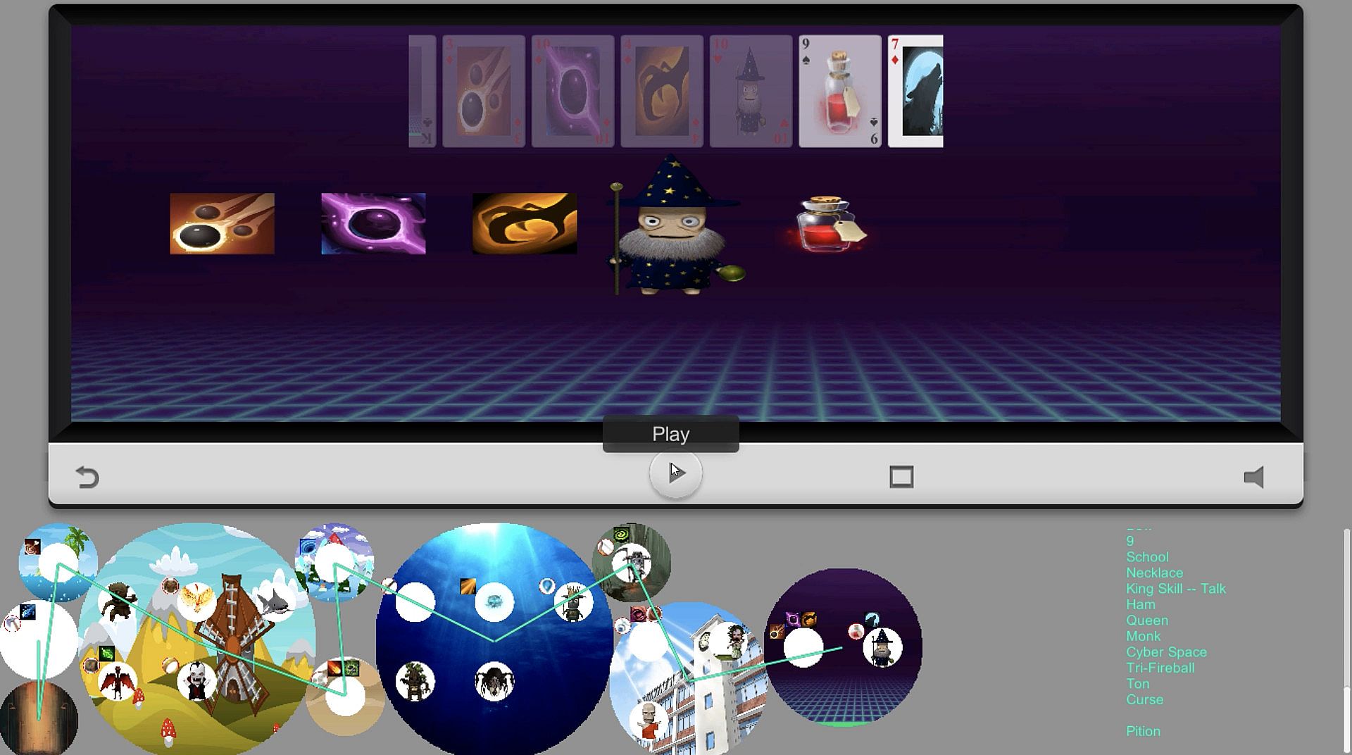 • View cards, and make a story with scene, character, spell and equipment.