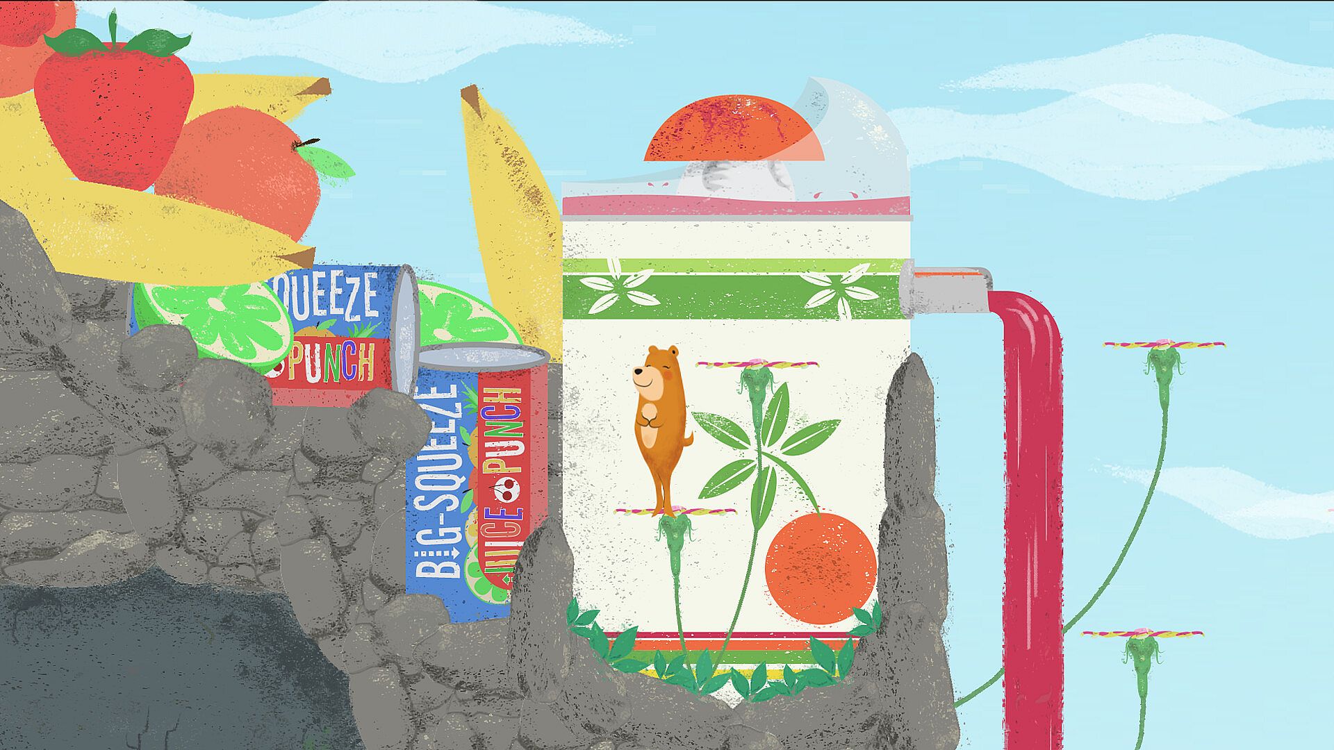 Merry Bear has always dreamed of becoming a theme park mascot, so she moves to the base of Summit Park. When she arrives, however, the neighborhood of mascots is empty and the Summit Park cable car is broken. To solve her dilemma, Merry Bear must travel through themed lands filled with fruit punch waterfalls, figure out how to make espresso, explore the depths of a drive-in cinema, and navigate a giant freezer filled with TV dinners and skating penguins.