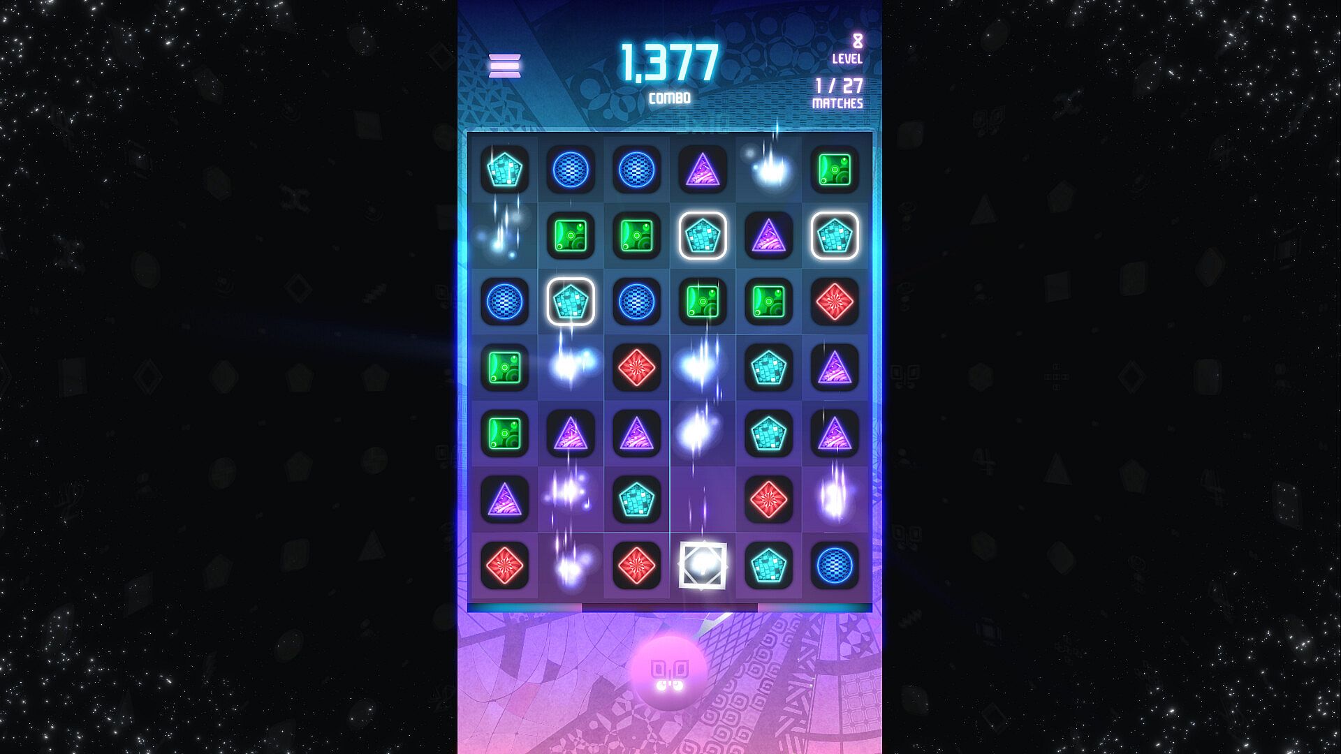 At its core, Meta Match is a match-3 puzzle game with added depth. You control only one player block on the board and swap places with the blocks around it to form matches and clear the blocks. The powerful Metamorphosis mode turns the rules upside down and helps achieve massive scores and climb the online leaderboards.
