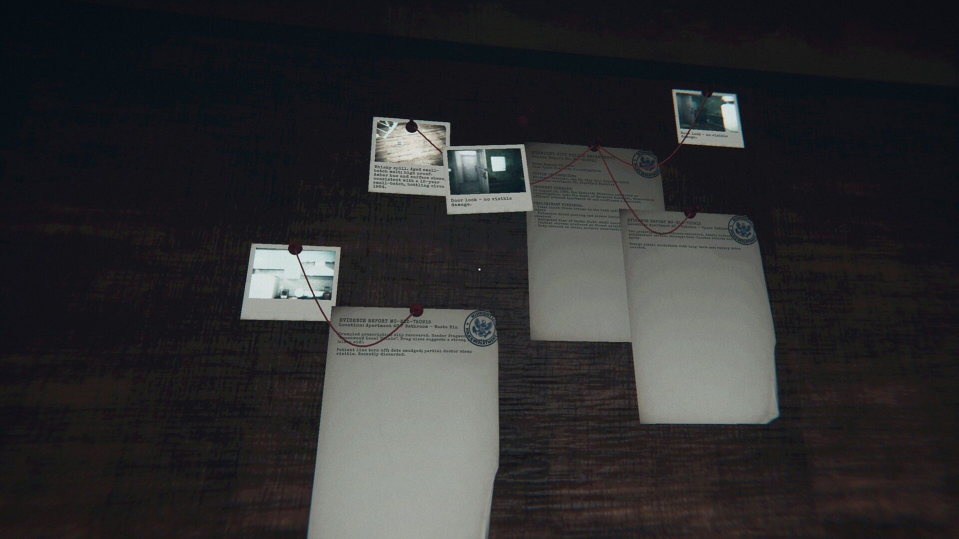 • Detective Board Investigation - Connect clues, photos, and leads to uncover the truth