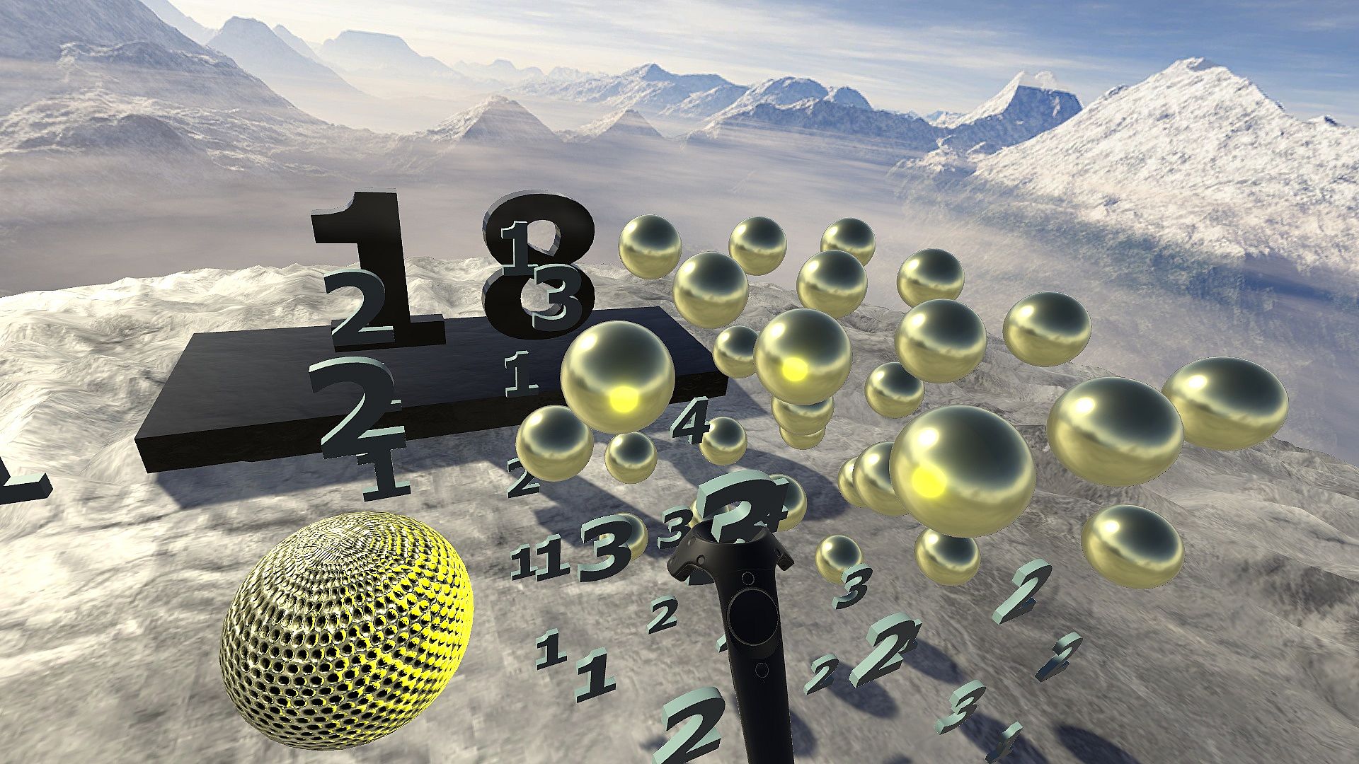 To open a sphere, "click" on it with the trigger of the controller. If it contains a mine, you loose. Otherwise, a number appears. This is the number of adjacent spheres that contain mines. The precise rule is that two positions are adjacent if their 3D distance is smaller than 1.5. That gives each sphere up to 18 neighbors; but don't fear, it is easy find neighbors: hovering over a number with the controller highlights all the adjacent spheres.