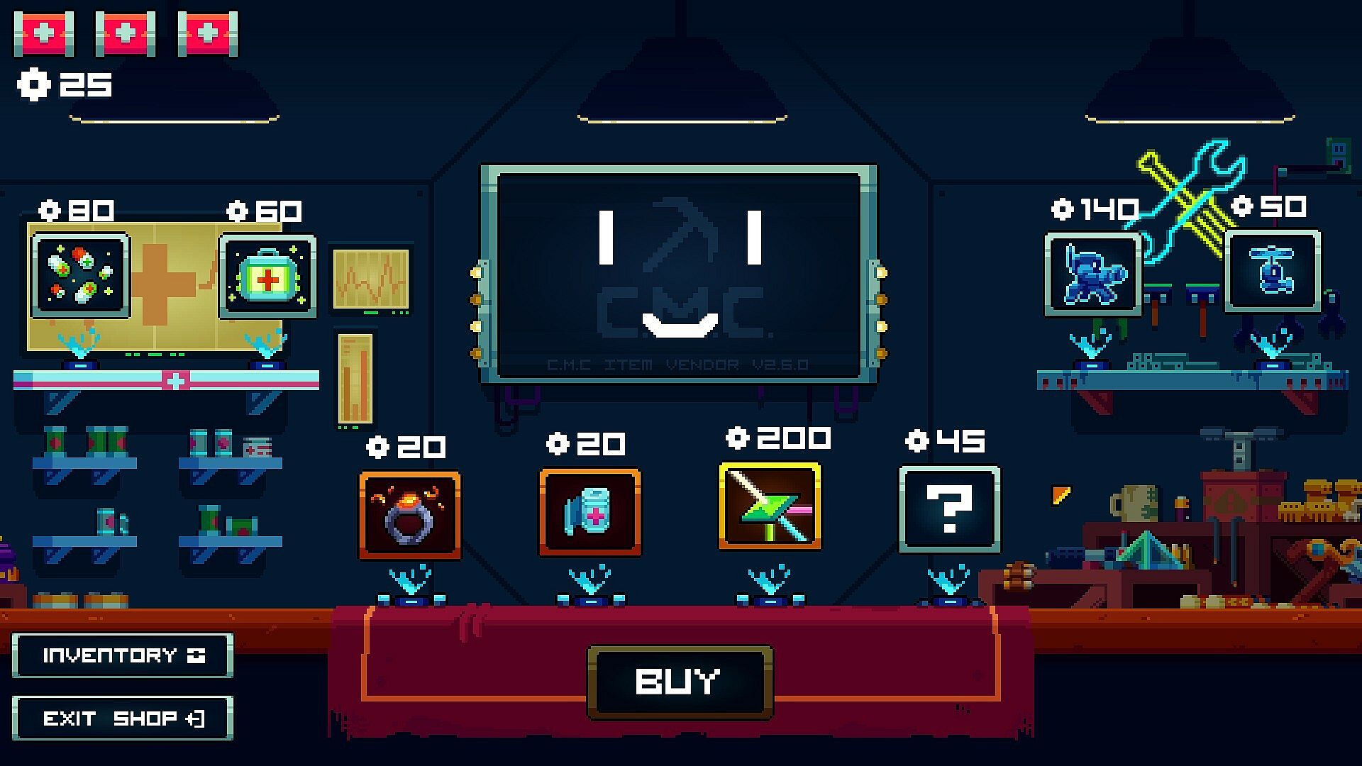 Spend scrap at shops to buy curious items and increase your fighting power. Pick up items that synergize well with each other to create a limitless number of unique builds. Take your chances with the store's random option to get legendary items for cheap. Complete challenging achievements to unlock new items, playable characters, and more!PREPARE