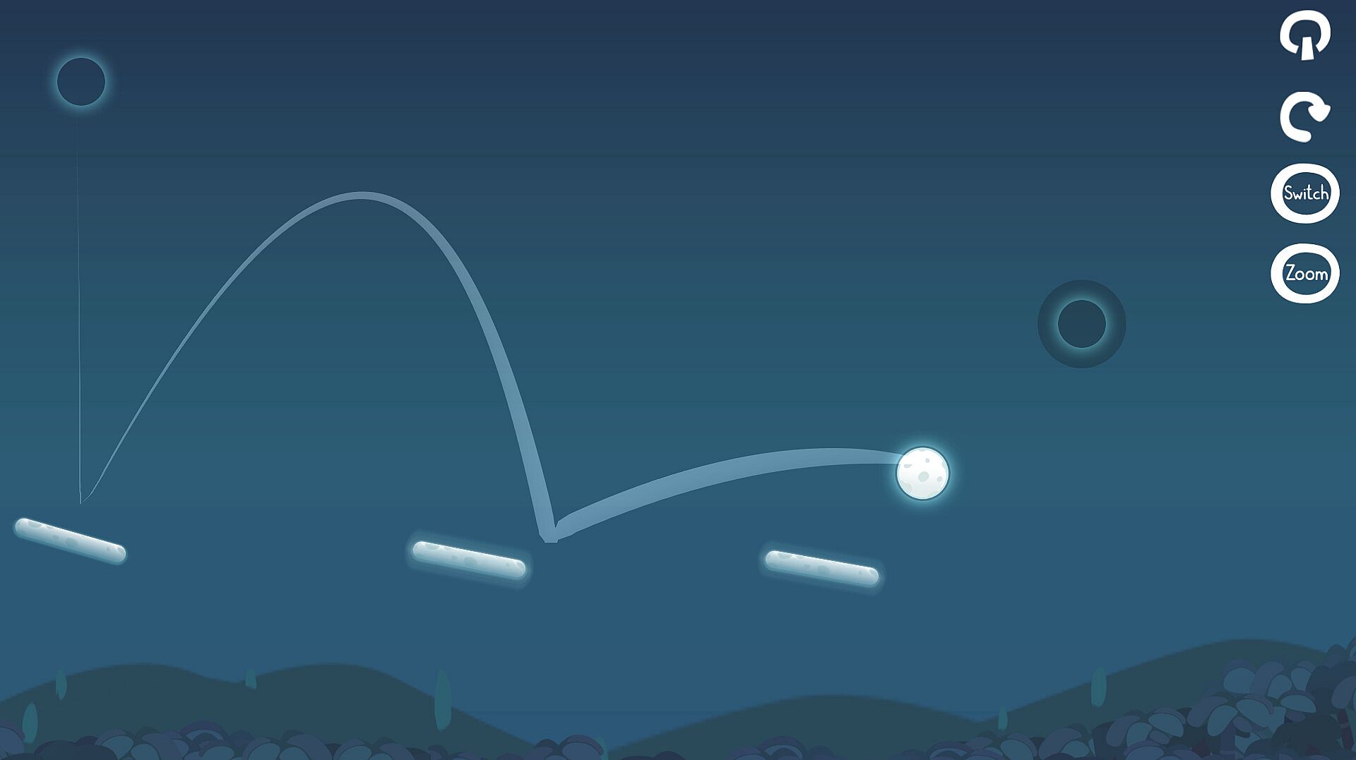 • Guide the moon through intricate puzzles by placing objects in its path.