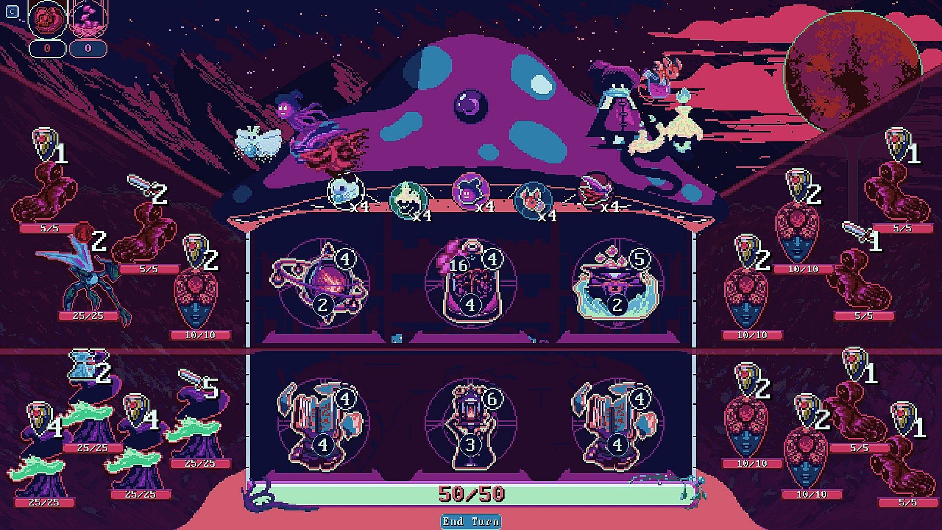 Help Lili defend her forest home from the Red Moon's nightly beast assaults. This indie roguelite blends turn-based meeple placement with resource management, where you deploy a limited supply across six station types and five familiar types to fend off 12 enemy varieties. Spirits encountered along the way boost the magical hut, stations, or familiars, while moon fragments from failed nights fuel upgrades for tougher runs. Each escalating night builds to three boss fights, culminating in a showdown with the Red Moon on the 30th night. Out-of-run progression ensures steady improvement over multiple attempts. Fans of strategic, pixel art roguelites with precise placement mechanics will find a fresh challenge here.