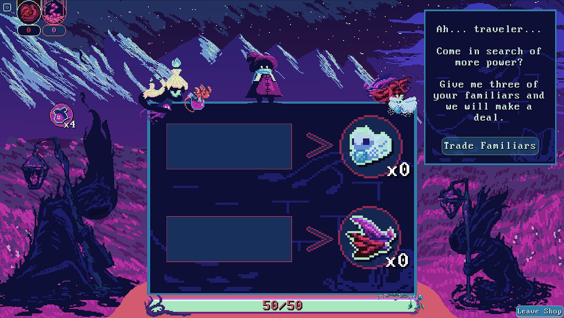 Each night is harder than the last but Lili isn't alone. Along her path Lili will meet five different spirits all that give her a boon in her fight. Some will improve the hut, others will out fit Lili with stronger stations, or increase her supply of Familiars. If the night’s power does overcome the hut you can Upgrade using the fragments of the moon you were able to collect. Keep upgrading until you are able to overcome anything that gets thrown at Lili.