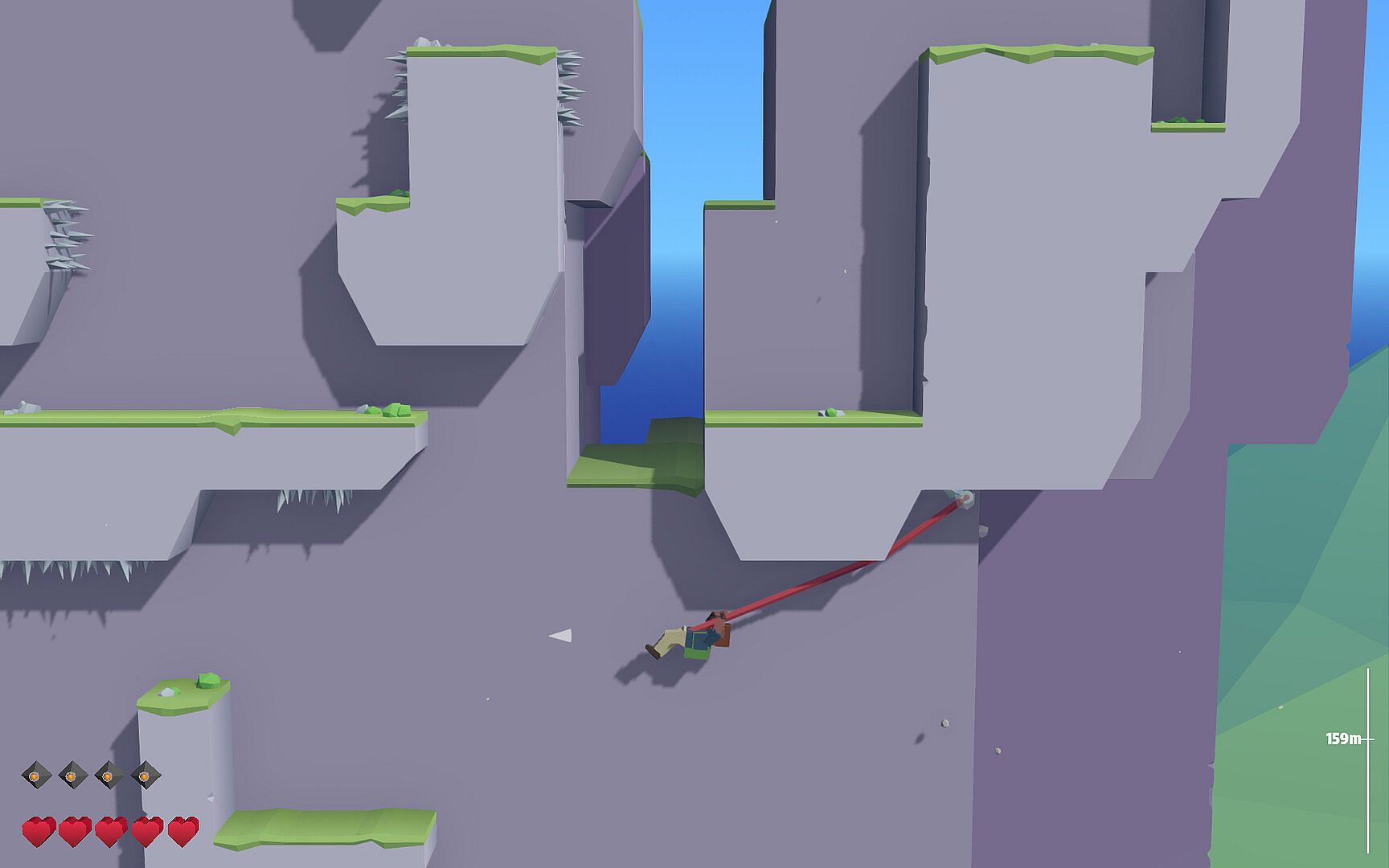 • A grappling hook with playfully satisfying swinging physics