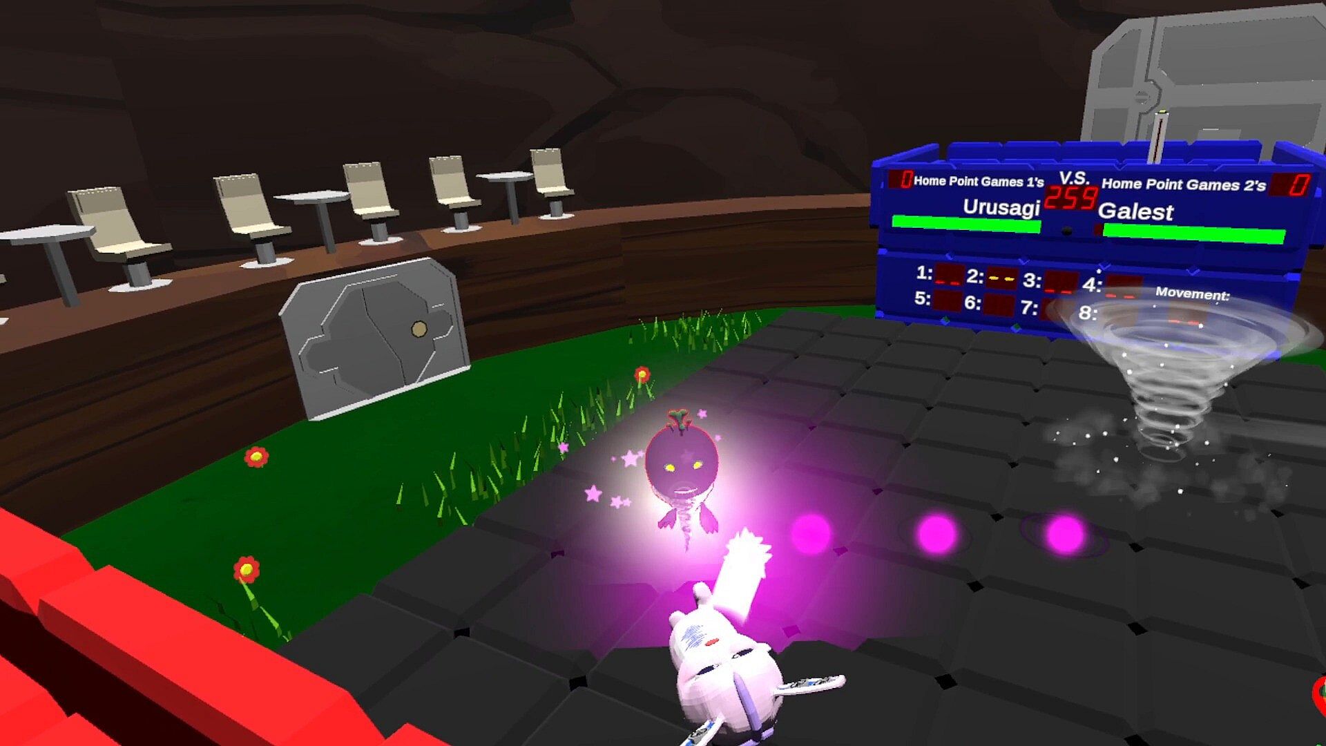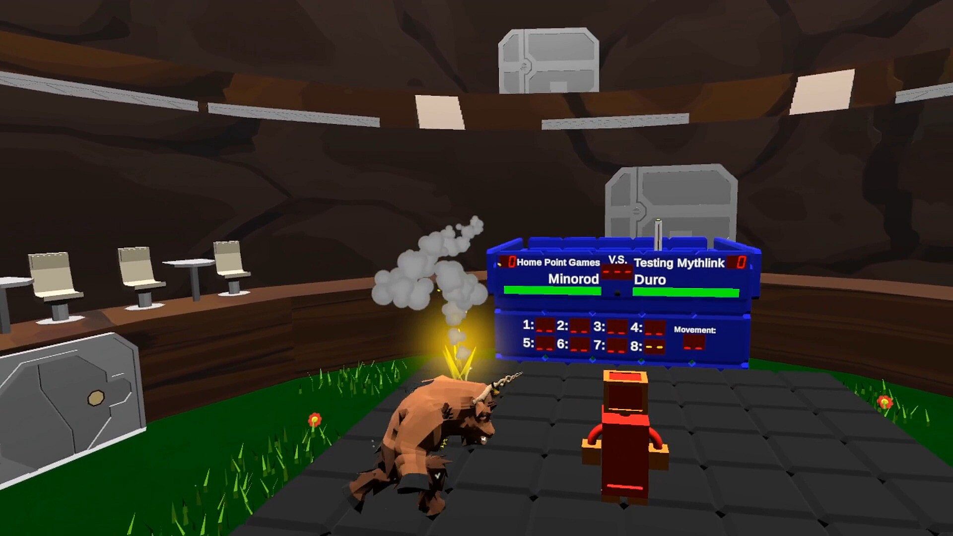 Players bond with a chosen Mythlink monster in this VR-only indie action game, forming a powerful Mythlink Unity that grows through shared training. Select from Minorod's lightning-earth attacks, Galest's wind-dark tricks, or Urusagi's sound-light bursts, then boost their strength, brain, or speed stats via mini-games like Punching Bag frenzies, Pile Up block challenges, and Baller Dodge evasions. Trained Mythlink Unities clash in online 1v1 arena battles, equipping up to nine unique abilities from a roster of 30 to outmaneuver rivals. Victory demands smart loadouts blending quick strikes and heavy hits. Free-to-play enthusiasts who grind personal fitness exercises for competitive edges will thrive here.