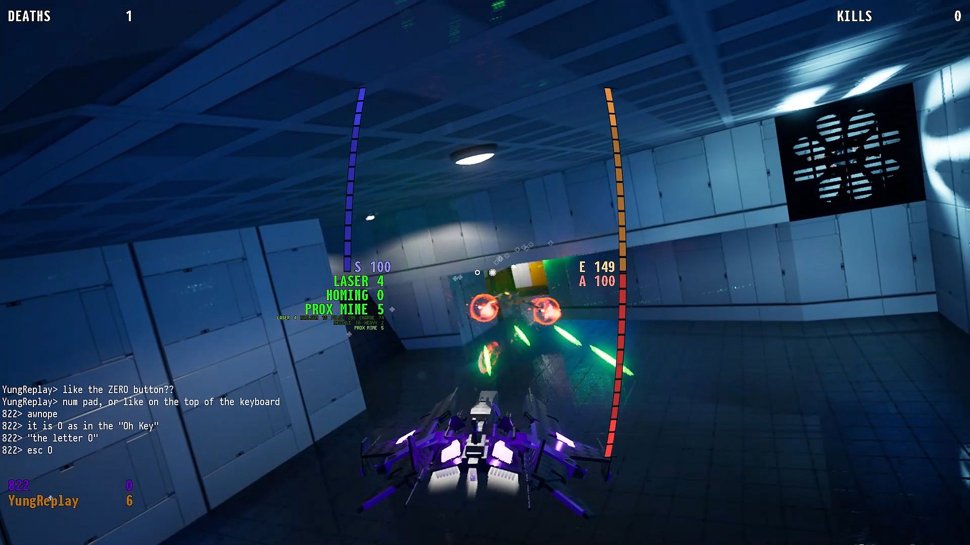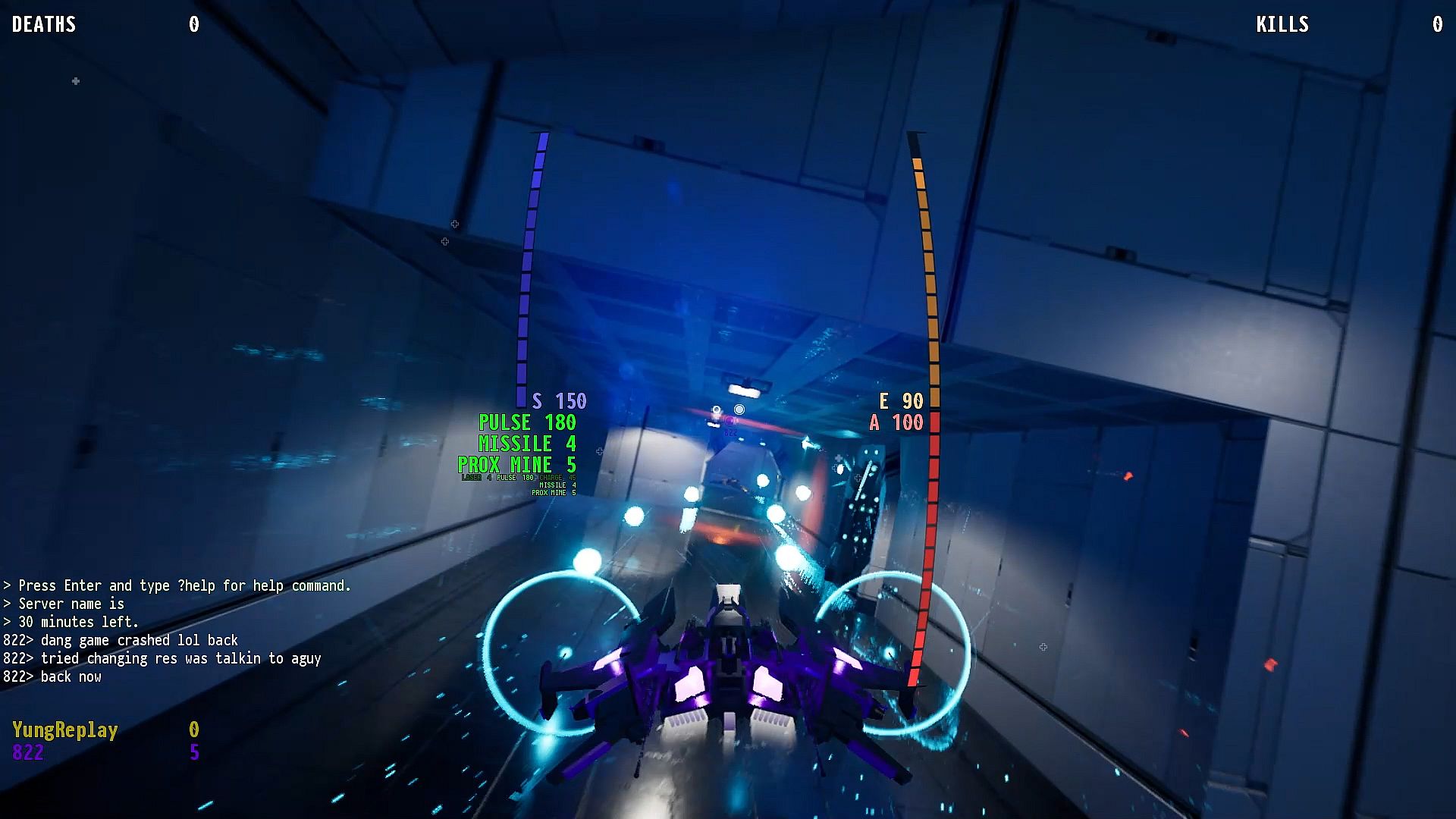 NeptuneGL is a fast-paced three dimensional six degree of freedom space shooter game in which the player possesses a space ship and must fly in all dimensions to attack other ships. Heavily themed with a sci-fi aspect, the game includes lasers, missiles, and realistic movement physics with special focus on multiplayer. Kill limits and time limits can be set for multiplayer games, serving as good game goal states for a final winner to be determined in each and every online match up. Depending on the choice of the level at start, the game can be set in an enclosed mine-like zone, or an open space. There are several key features that constitute the gameplay: