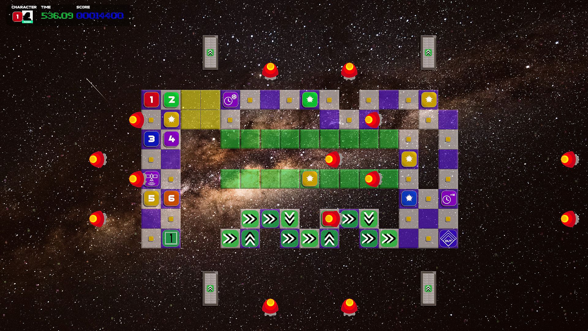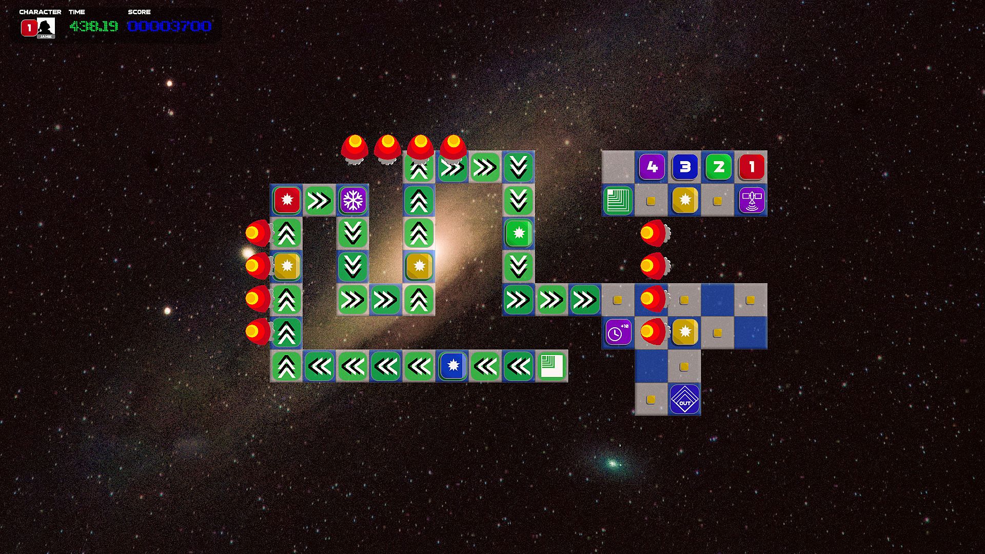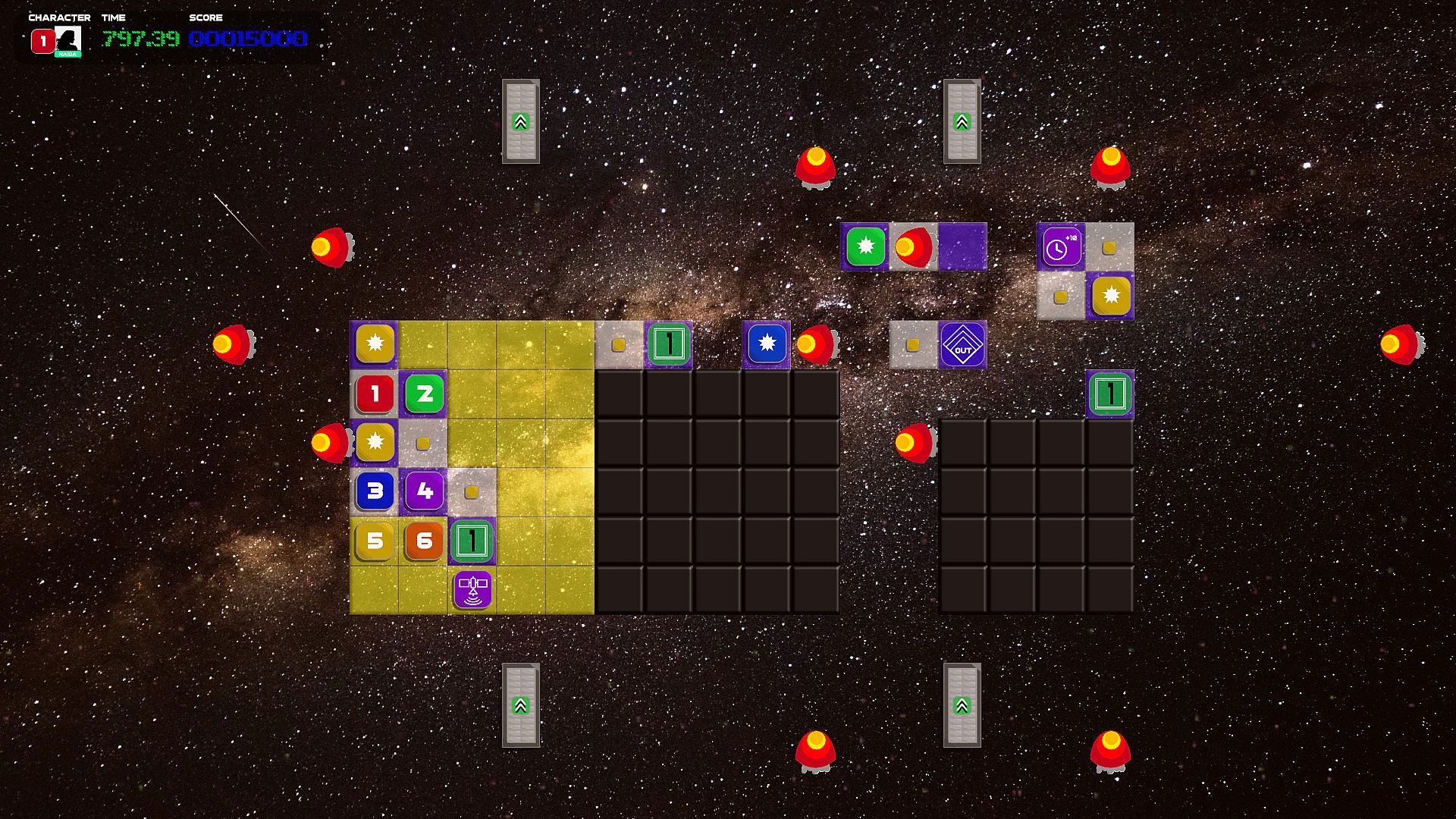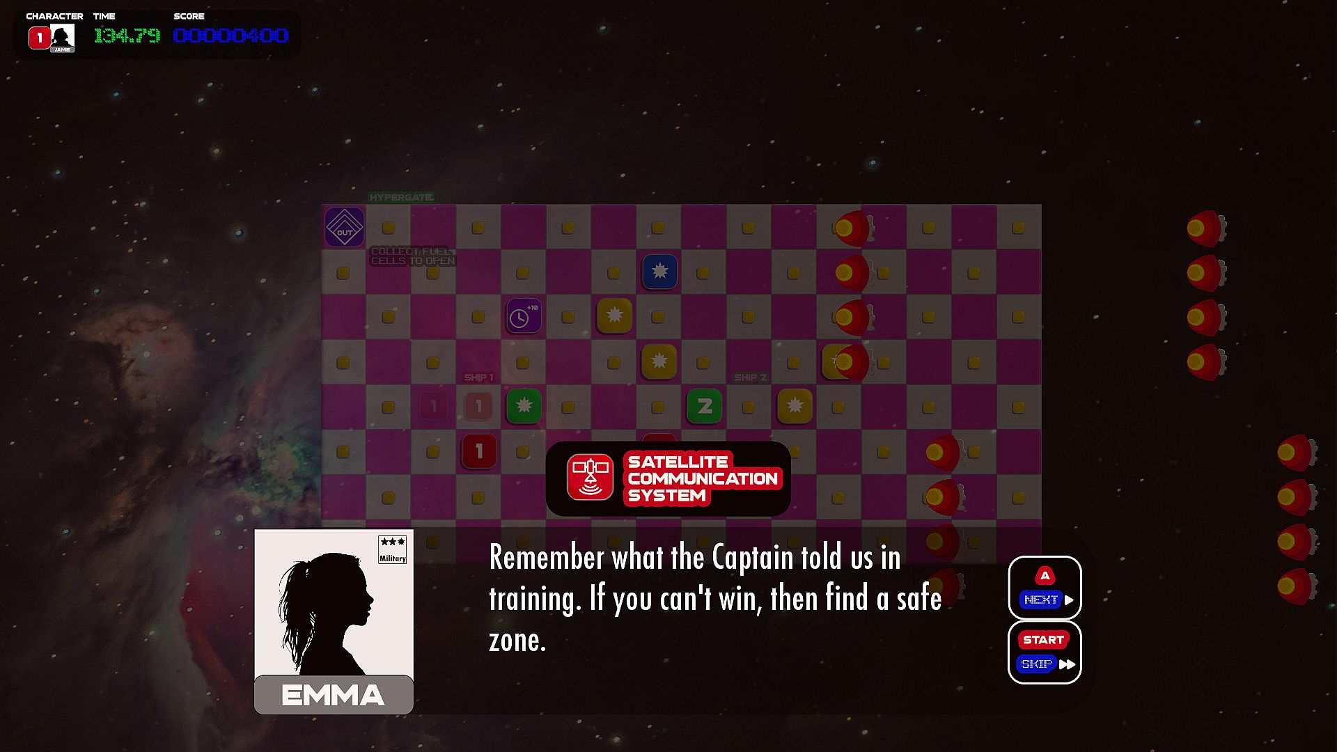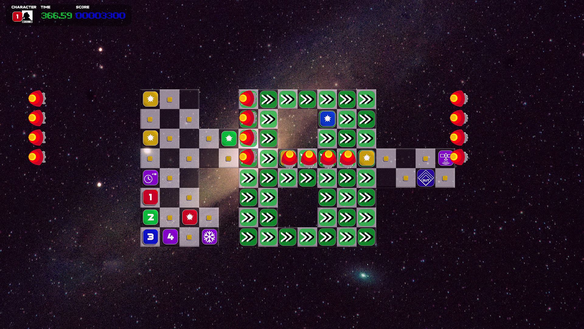 • Use action tiles (such as teleports, conveyor belts and switches) to get your ships to safety.