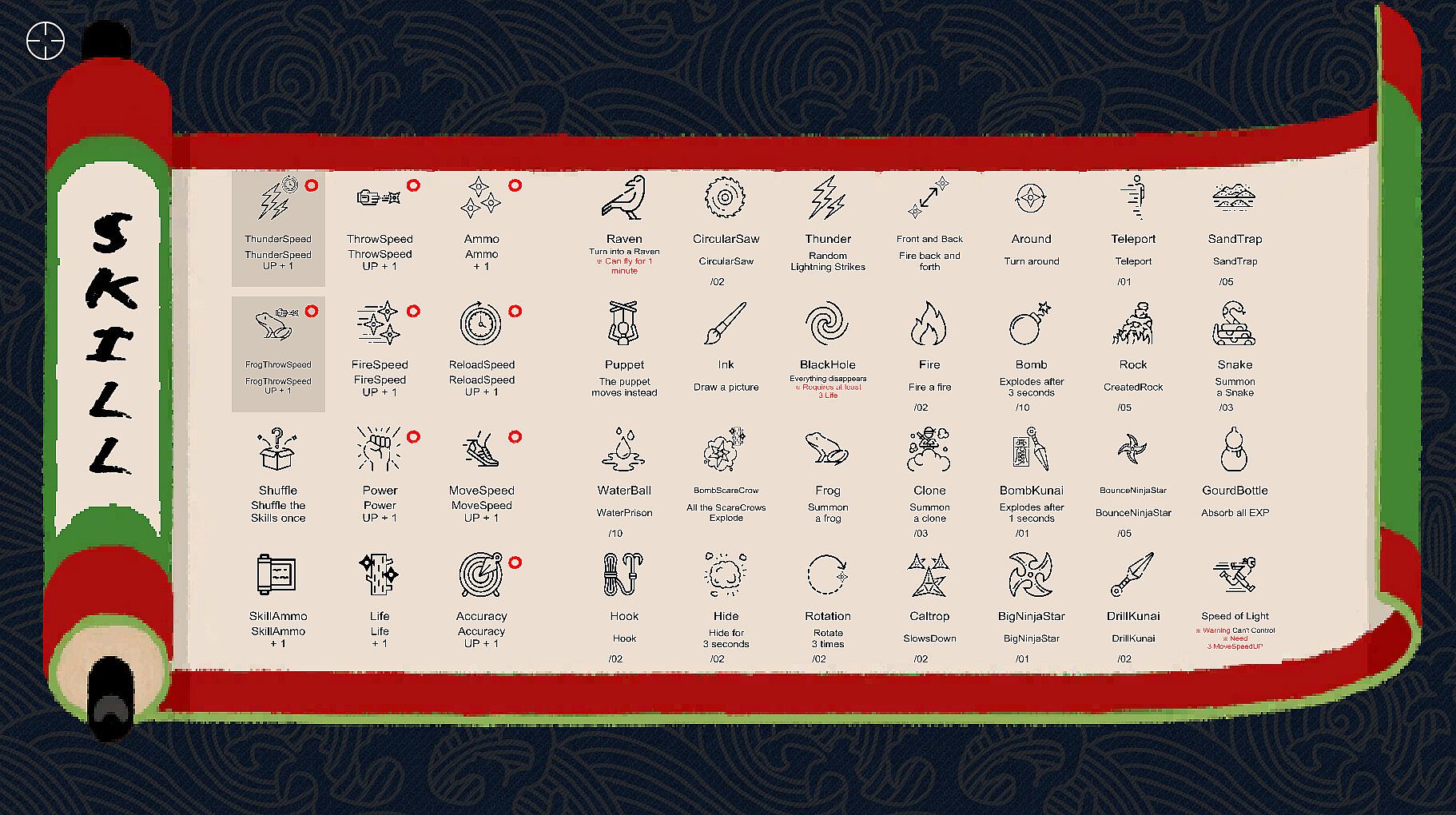 There are 40 different ninja skills. Each skill has its own characteristics and you need to use the ninja skill that suits the situation to survive.