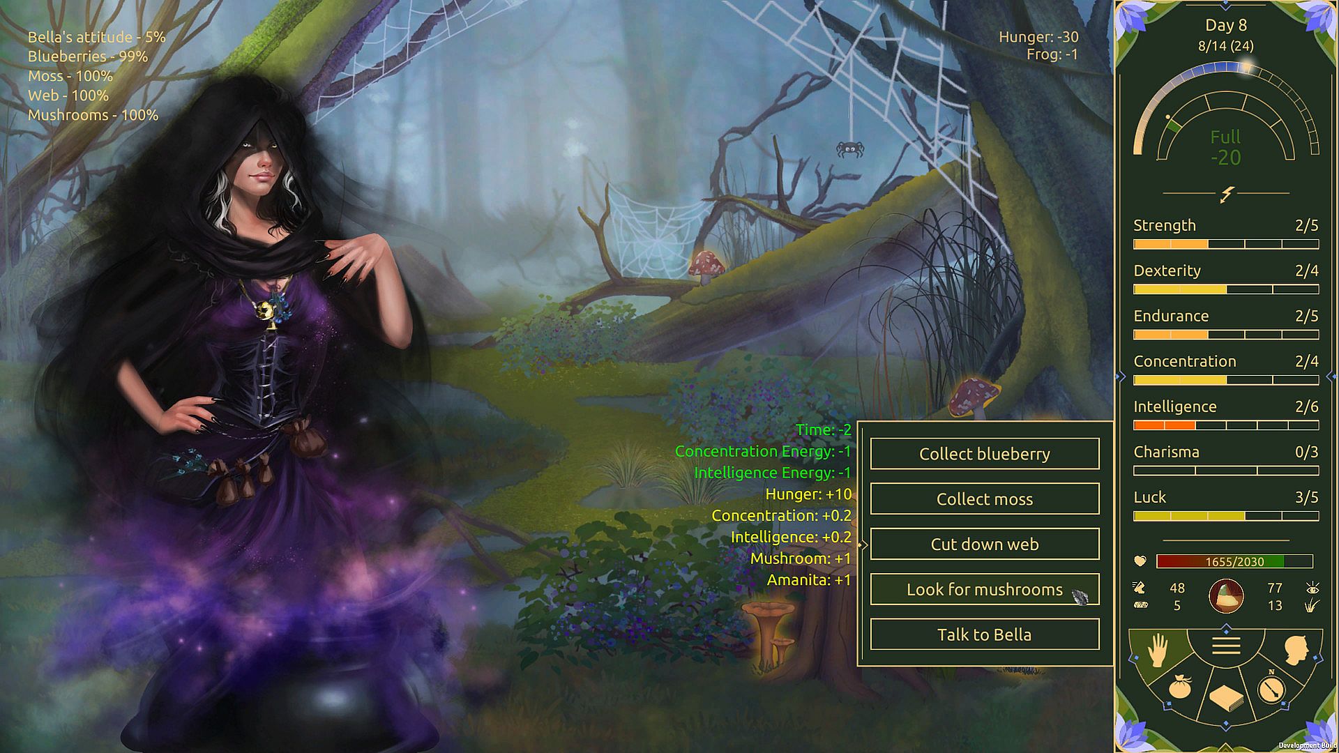 • Survival mechanics which require you to keep track of health, hunger and energy. Unlike many other survival games, this one is essentially turn-based, allowing you to carefully plan your next move or even the whole day! As a result, your survival depends not on luck or speed but rather your ability to plan ahead.