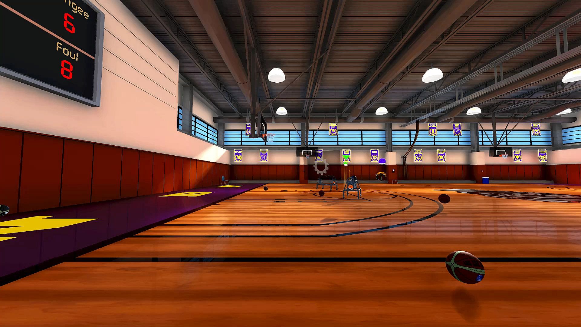Experience moving around and playing with six different hoops in a realistic and accurately scaled gymnasium.