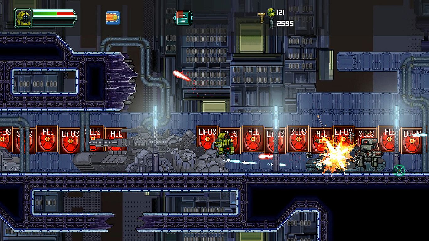 You take control of O.R.B., a robot with a special ability to transform into an attack ball. As a robot, you’re a powerful gun-slinging robot, who can walk, hop, shoot, and shield yourself from the evil minions of DiOS. But there are moments and obstacles which you simply can not overcome without being a speedy little ball made of metal and badass-attitude.