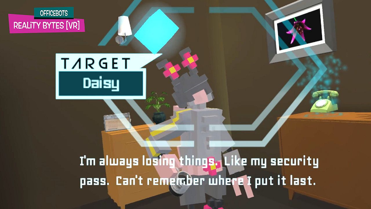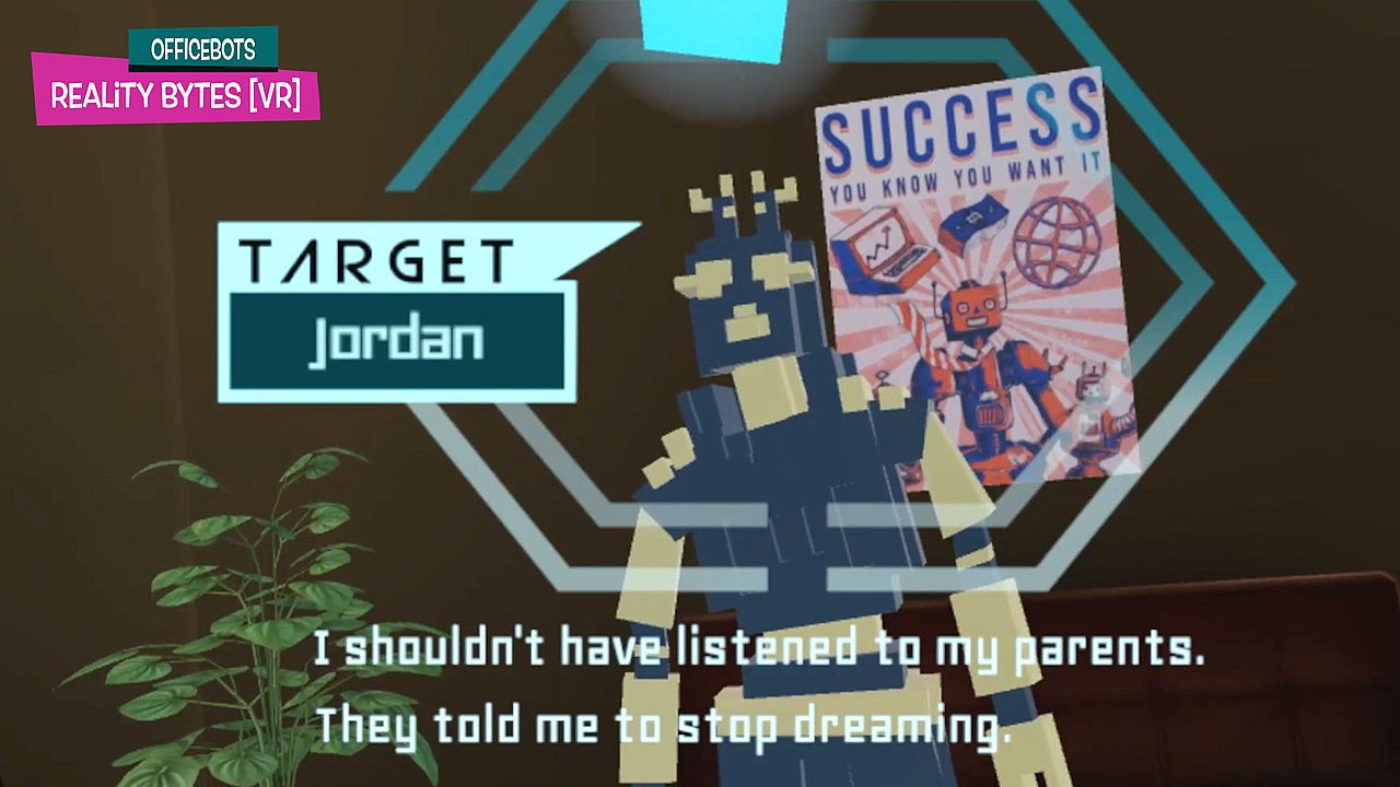 OfficeBots: Reality Bytes [VR] is a little game with a big heart. Explore a wonderfully weird corporate office, listen to your robotic co-workers’ stories, and help to solve their problems. Ultimately your goal is to find a way to escape, but your journey to freedom will give you many opportunities to brighten up the lives of others.