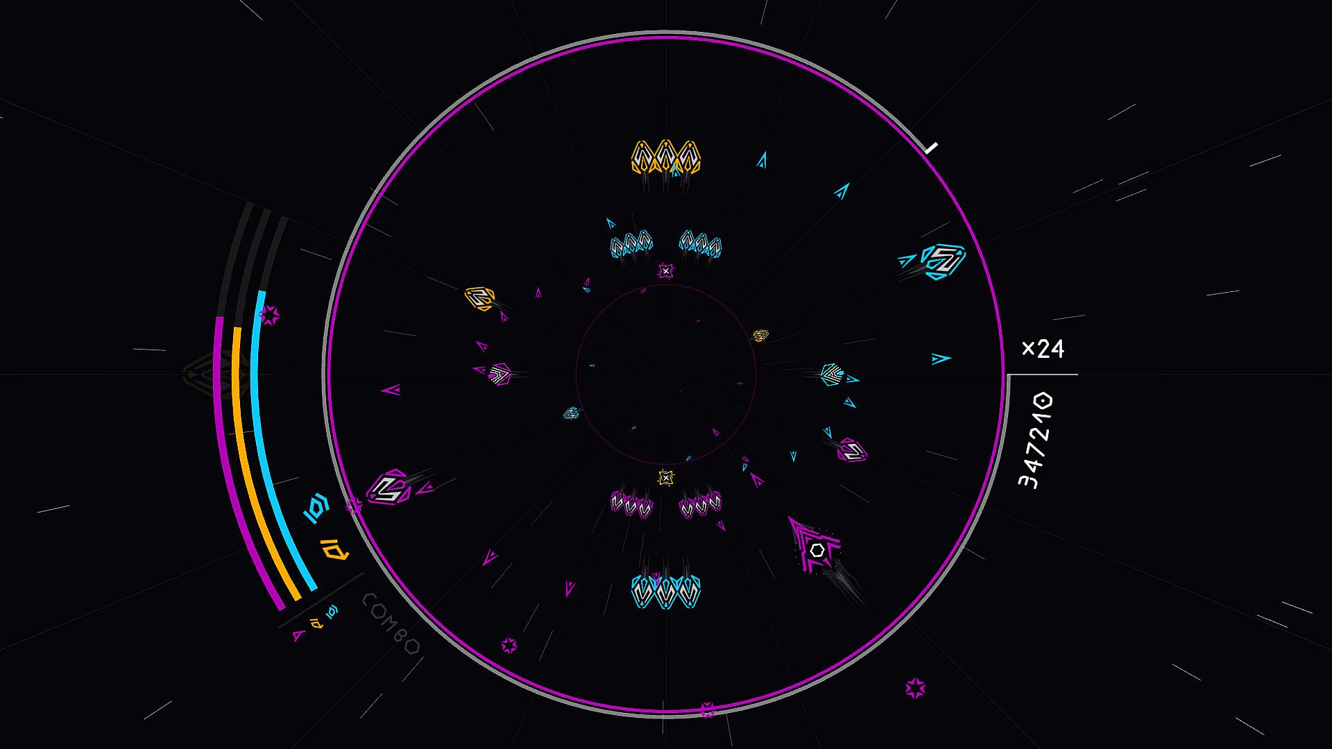 Drive your ship through waves of foes on a circular, enemy-packed battlefield in this colorful 360° bullet-hell shooter. Switch between three dominating colors to gain immunity against matching bullets, absorb fire, and optimize damage output on enemies. Master the depth of the map to handle incoming threats while building combos by eliminating foes in the right sequence for bonus points and multipliers-chain combos together to unlock greater power. Interactive music pulses with your actions, fueling an addictive loop on PC that's easy to pick up yet demands precision to conquer leaderboards. The deep combo system rewards skillful play with no randomness in enemy patterns. Bullet-hell fans chase high scores through repeated runs toward mastery.