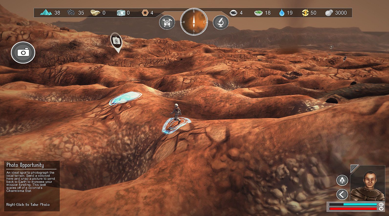 Choose from three landing sites: Candor Chasma in the dusty Valles Marineris, Mawrth Vallis at the boundary of highland and plains, and frozen Hellas Planitia close to Mars' south pole. Each map has different weather and hazards, along with difficulties for navigation and resource location. Find points of interest, missions, minerals, ice, and photo opportunities as you explore. All terrain has been generated from satellite images of actual locations on Mars.