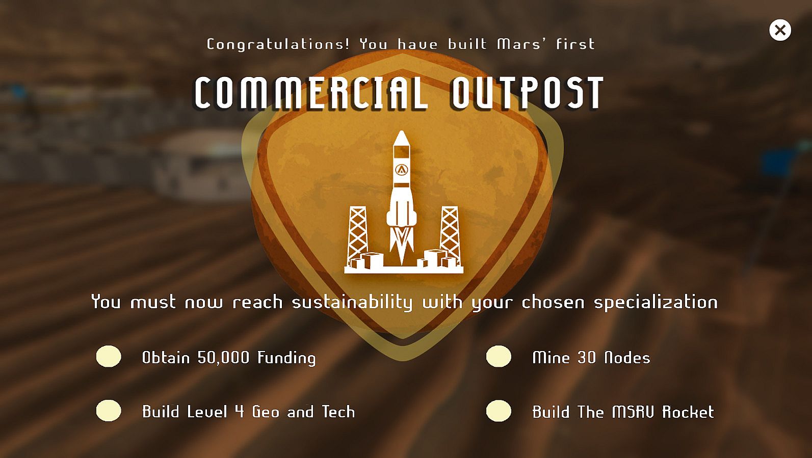 Explore a new and unforgiving frontier. Lead an international team in establishing humankind's first foothold on another planet. Extract raw materials from the Martian surface to refine and use. Survive dust storms, accidents, and hypoxia. Achieve complete self-sustainability, or die trying.