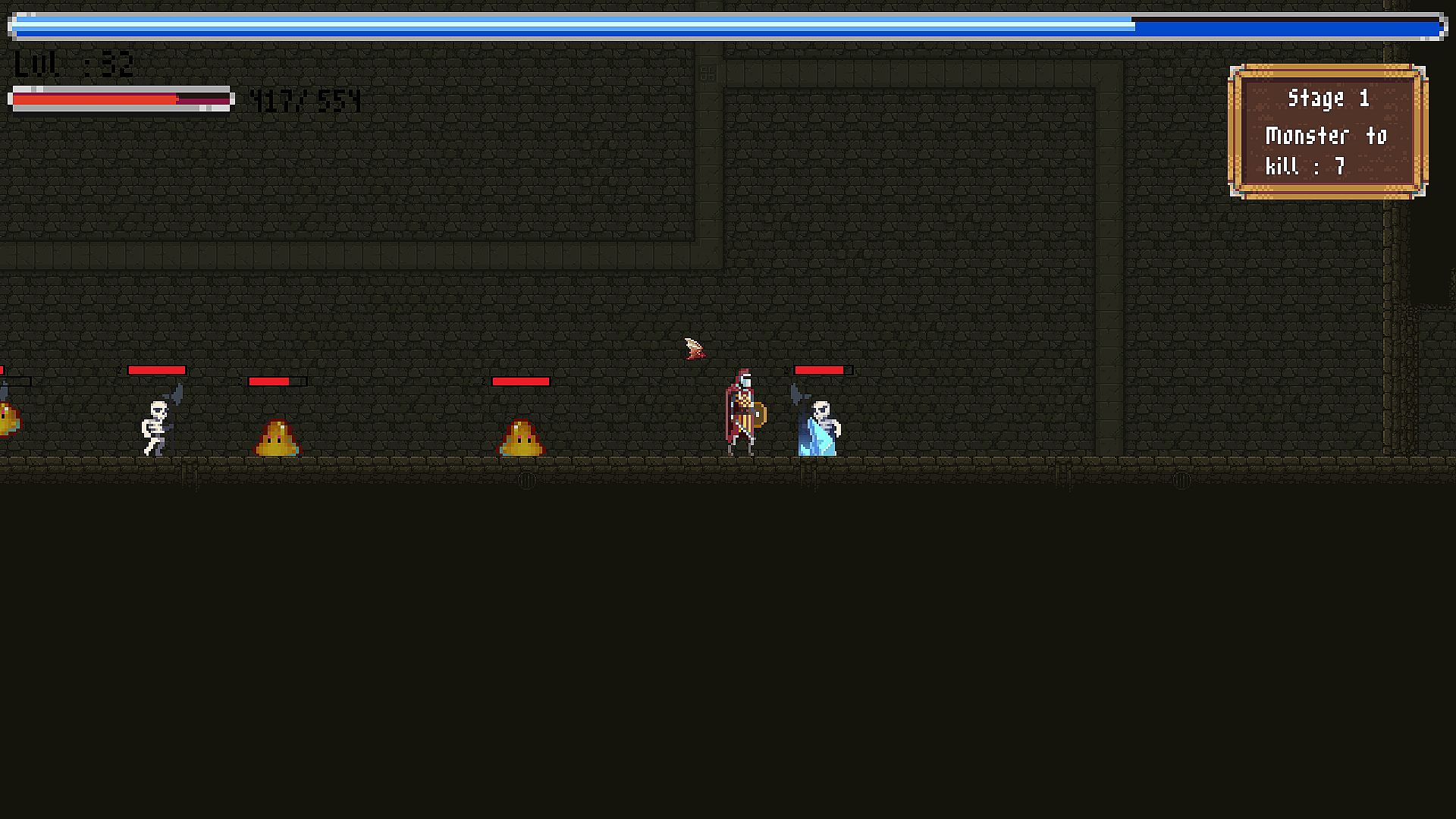 The game have more than 15 different mobs, each of them can drop crystal that you can sell to get richer and some materials. The monsters will have different path and reaction when they are close to you, so you need to adapt to fight each different mobs.