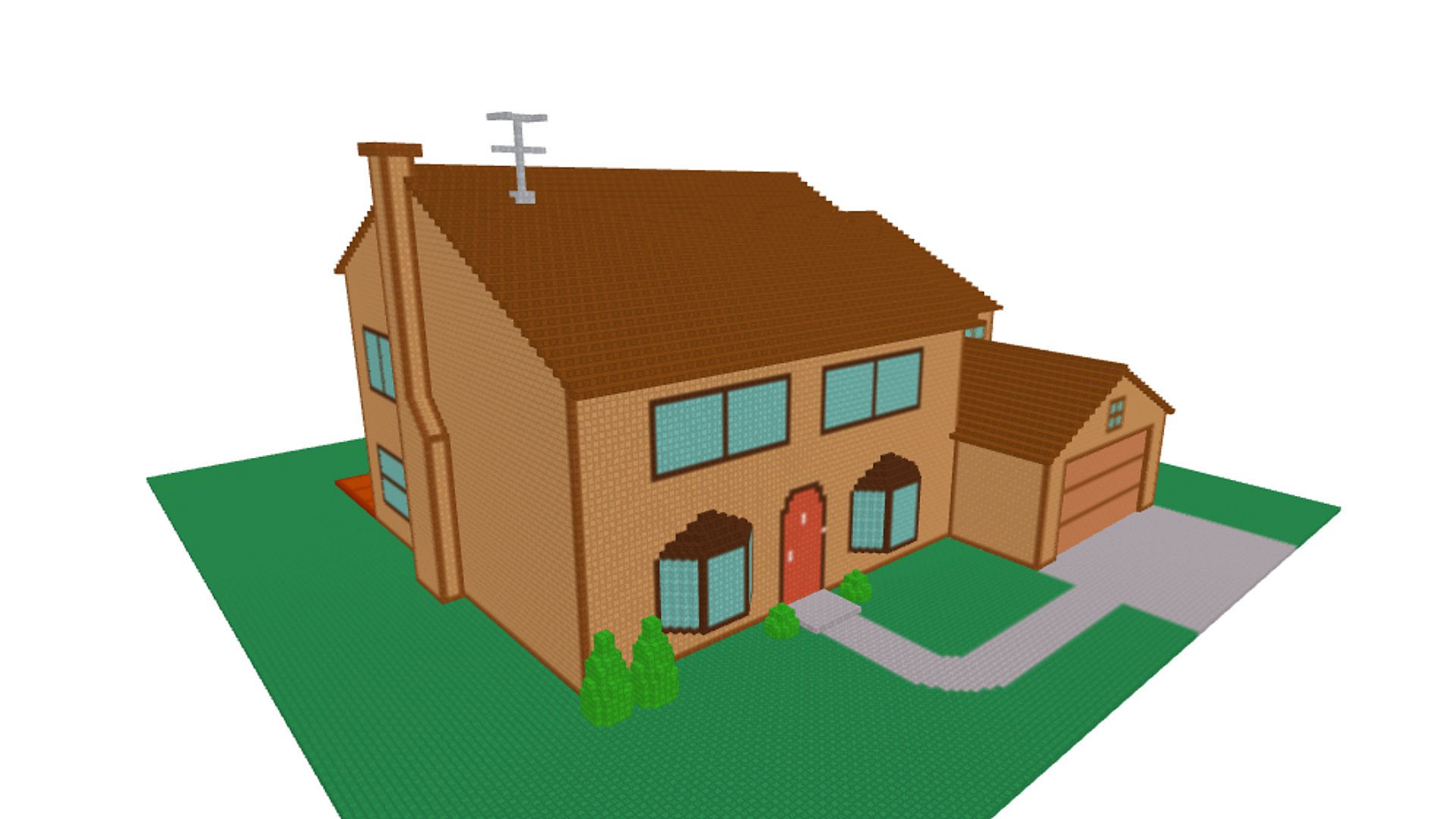 - Sample models include a house, living room, spaceship, car, and pistol