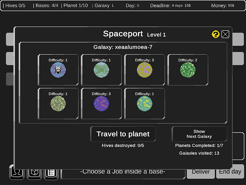 You are the leader of a Planetary Exploration Company, your goal is to explore planets to complete jobs and make your company survive and grow.