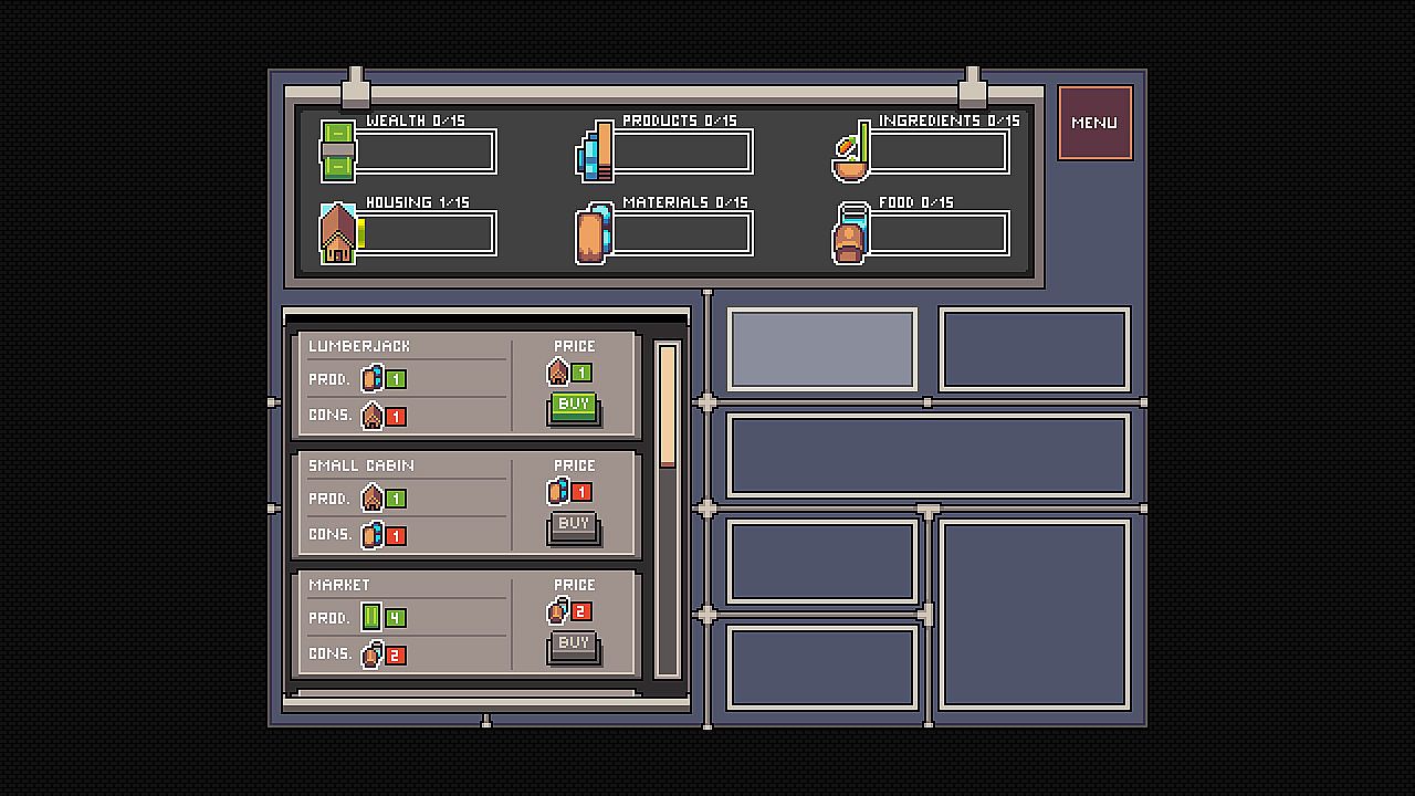 Pliksim is a tiny, casual, resource management game. All buildings in Pliksim produce and consume, and to unlock them all you need to find the right mix.