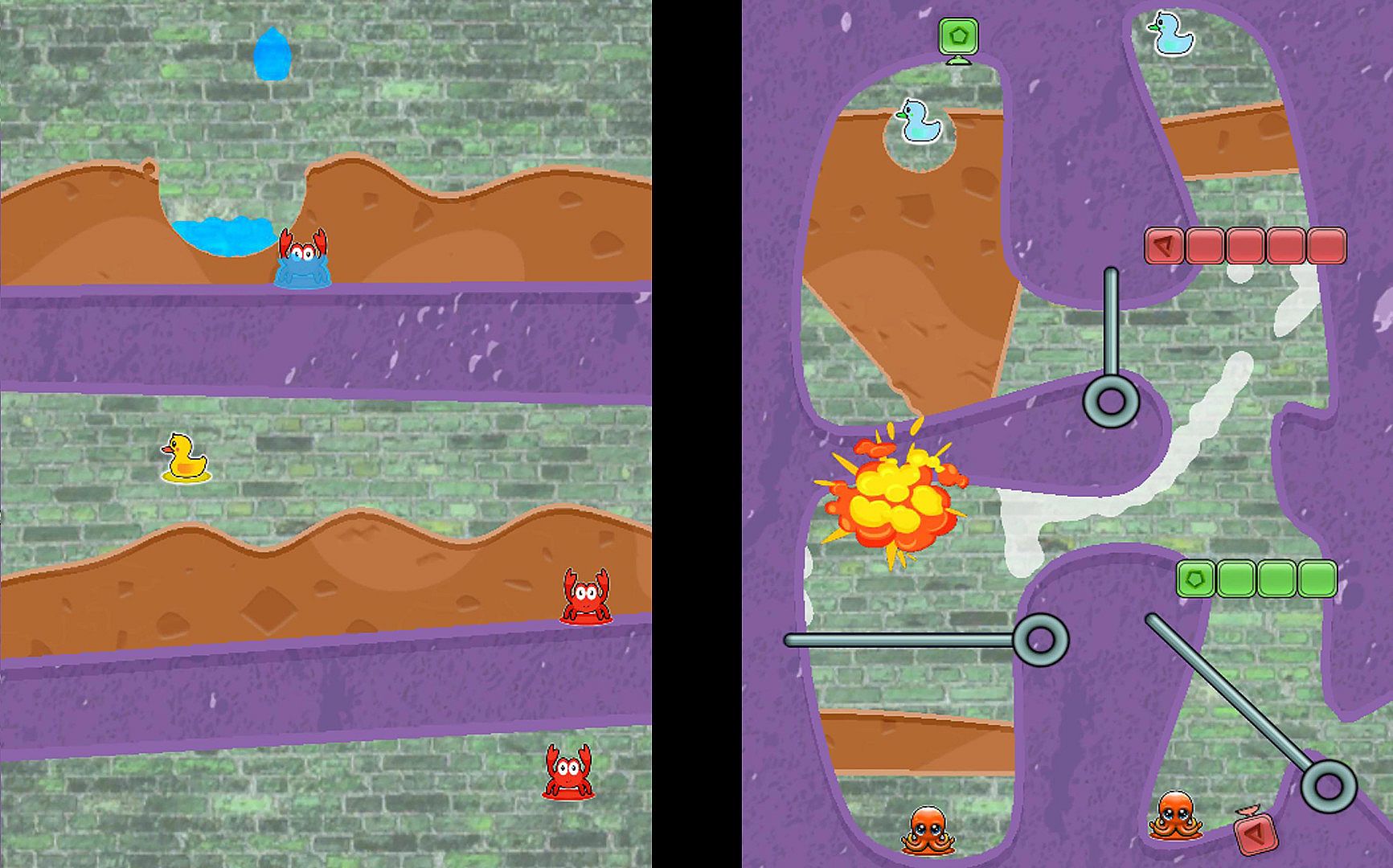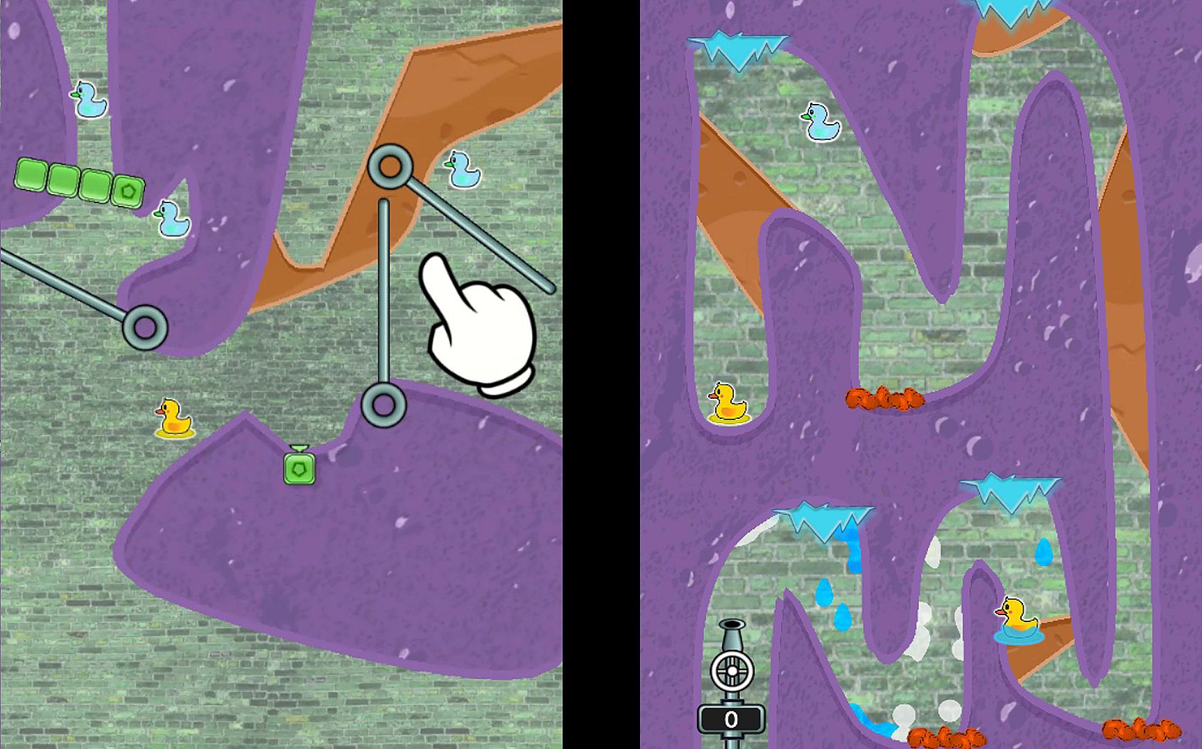 • Water - a stream of water falling on a yellow duck fills it, as a result of which you get a bonus.
