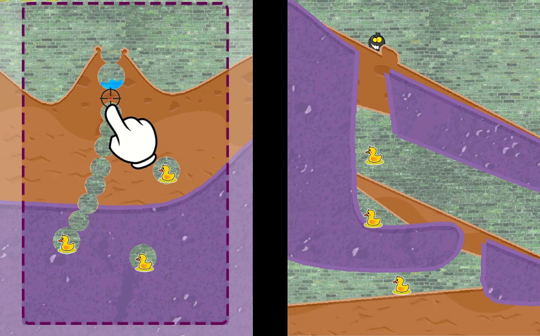 • Bomb - detonate it to destroy the sand. This will allow water to flow in the resulting channel. It is important to direct the water towards the ducks.