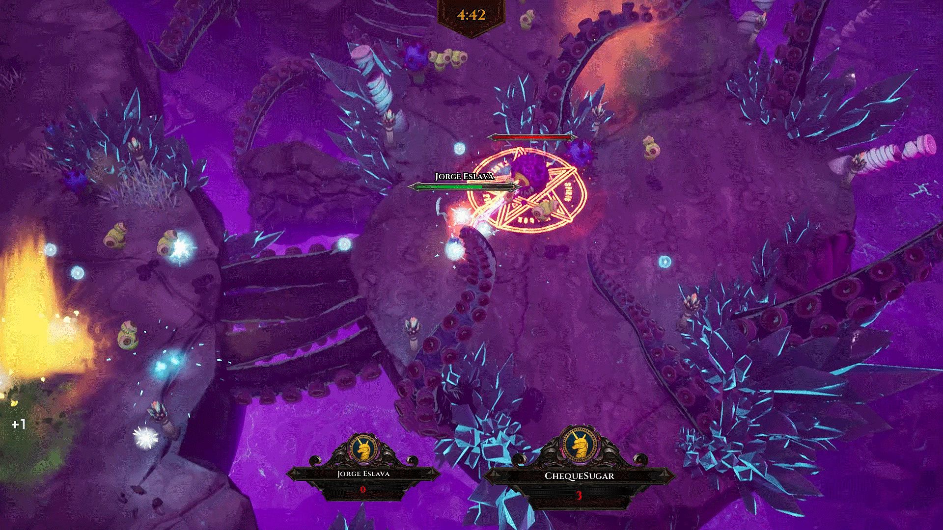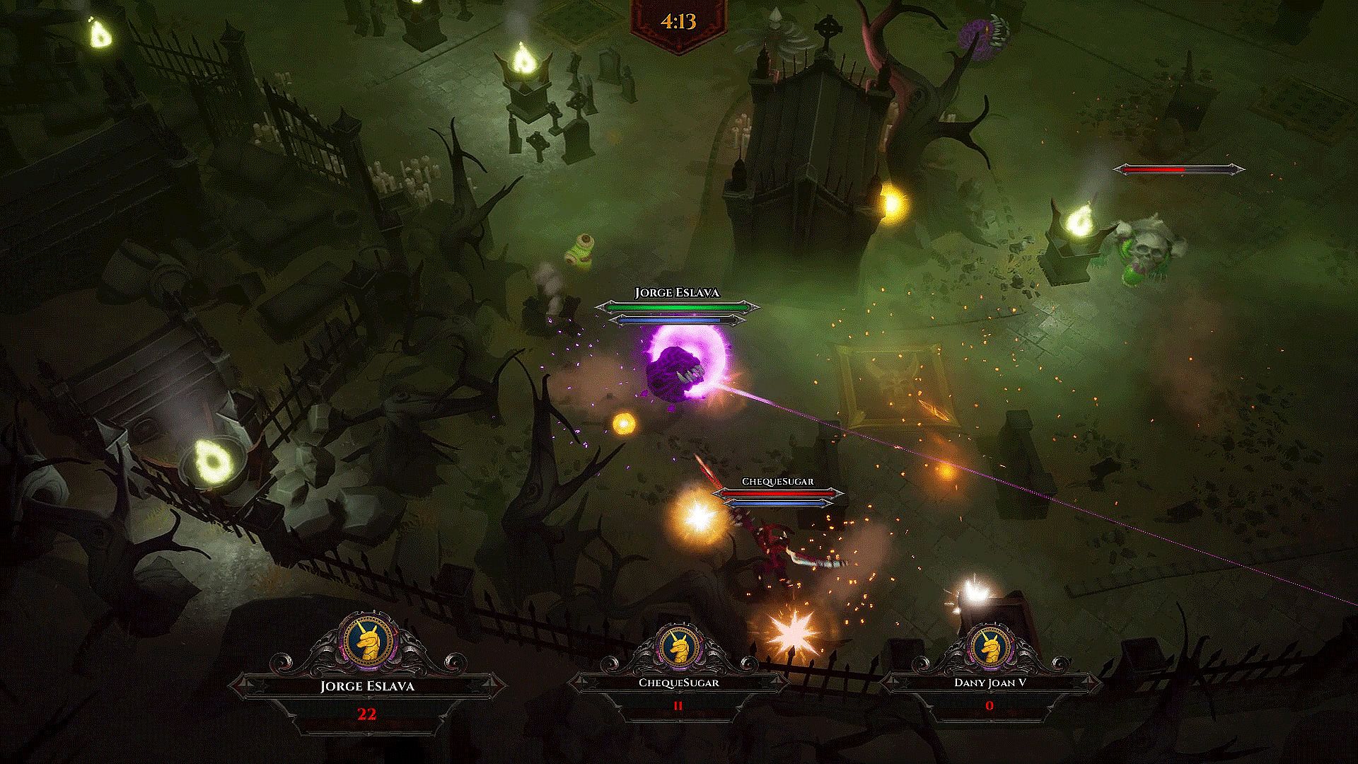 Up to 4 players can join a match. Each player starts out as a "Ghost" who must possess monsters in order to use their abilities to rack up more monster kills. Each monster has different types of movement, attacks and HPs.