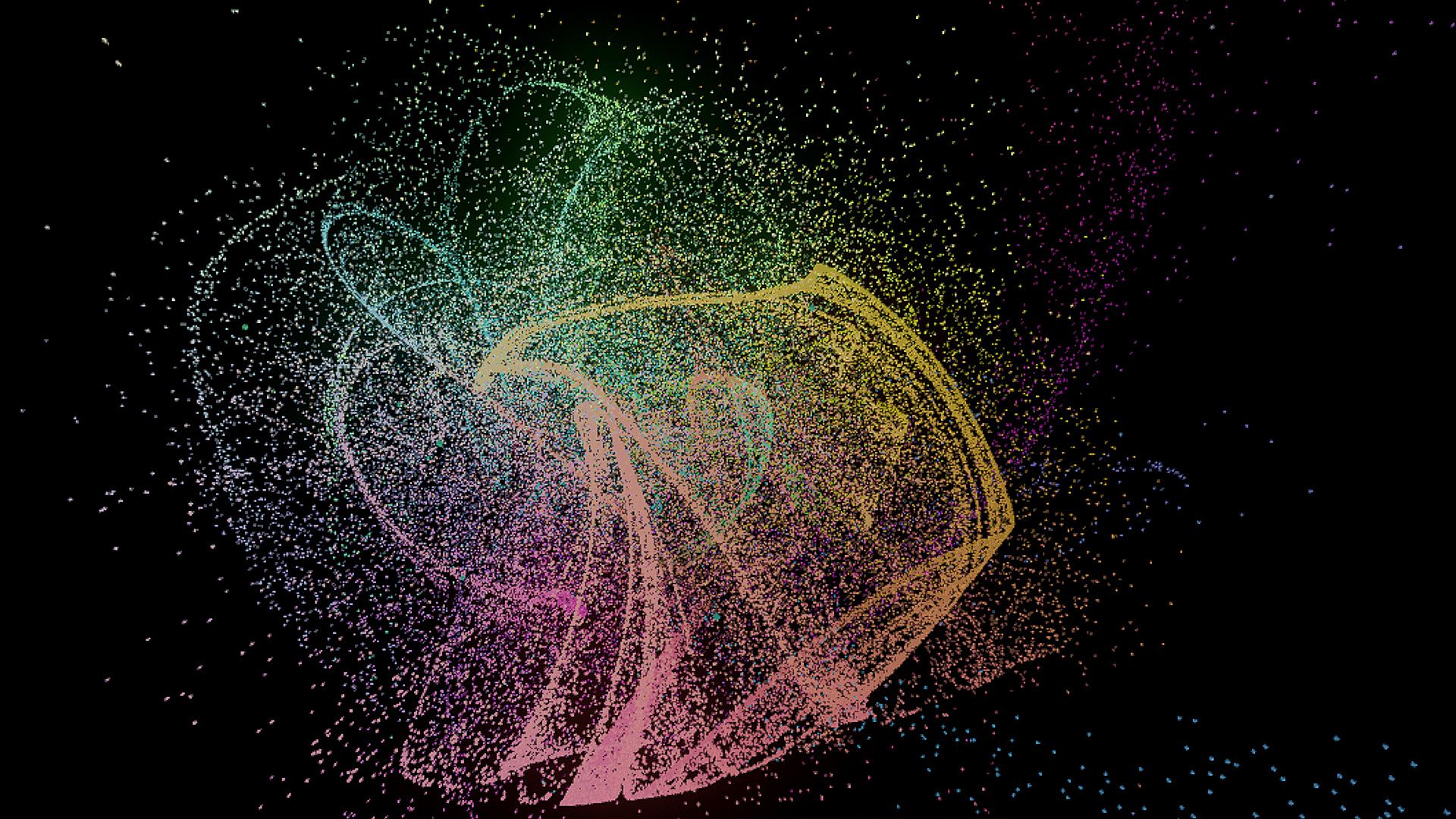 Psyia is a custom GPU-accelerated physics system. Enter the StarLab and become a rainbow wizard (or witch), casting innumerable multicoloured particles around a void. The world pulses and morphs in time with the music and every detail of the simulation is tweakable to your exact tastes.