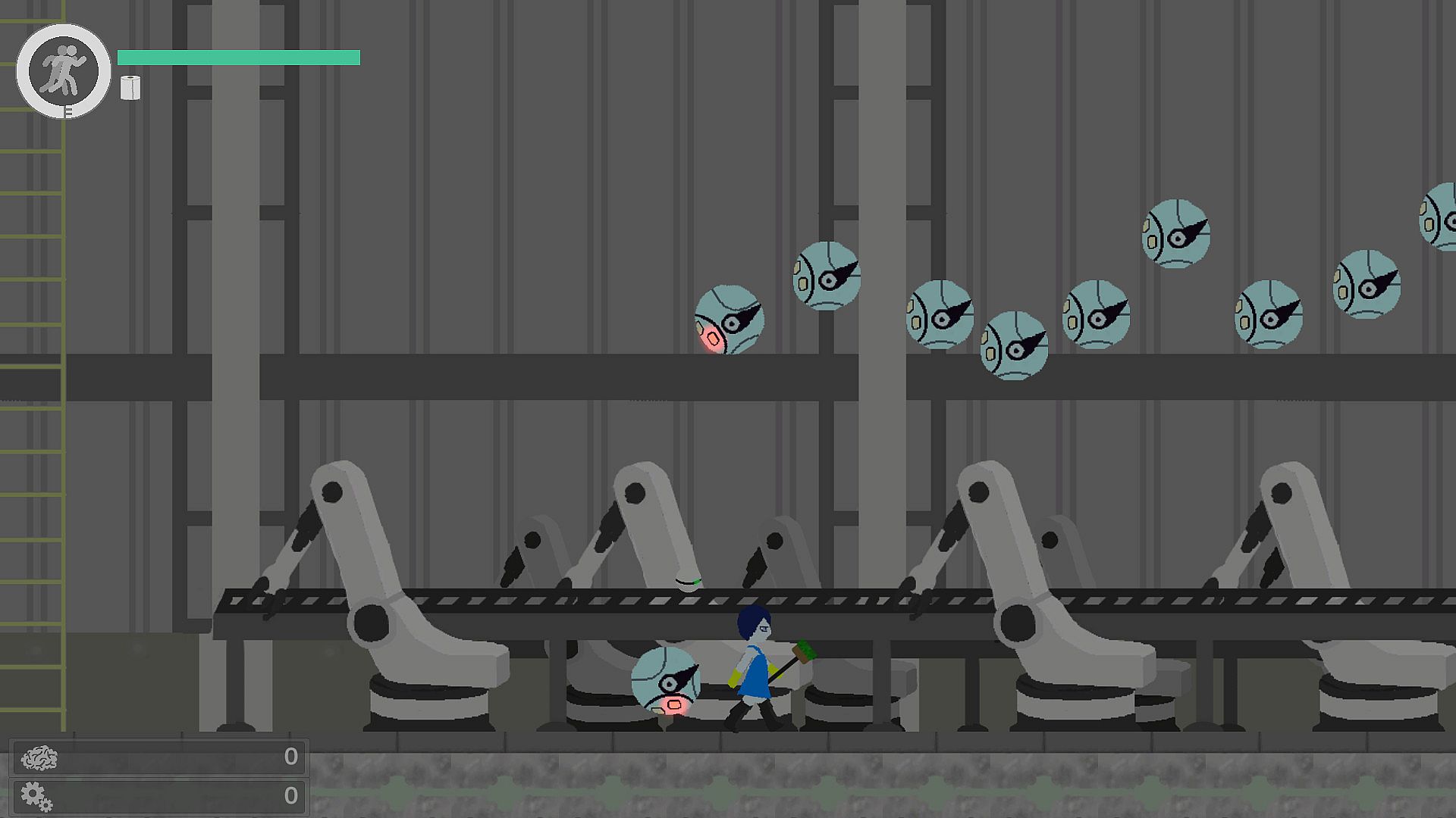 This 2D action RPG features intense battles against runaway robots that mimic living organisms and security robots.Combat with weapons unique to cleaning robots.