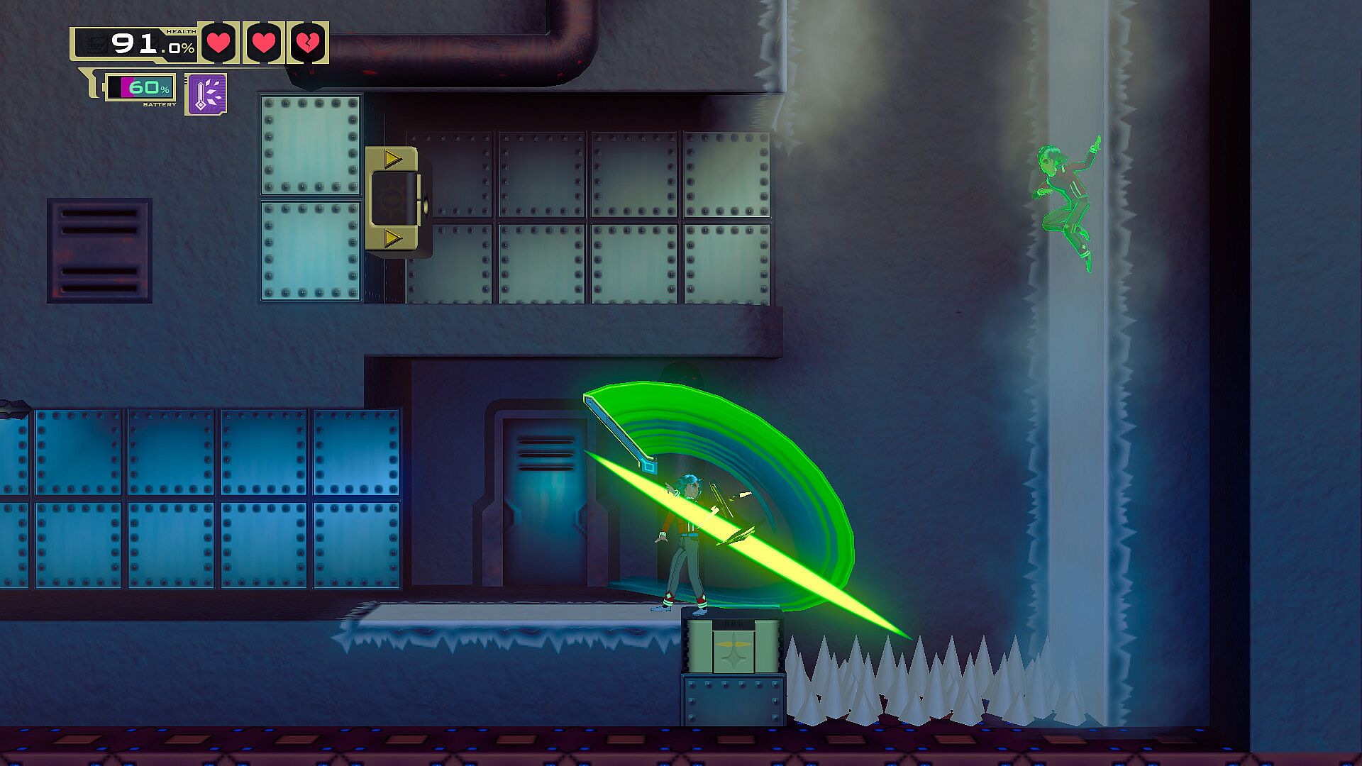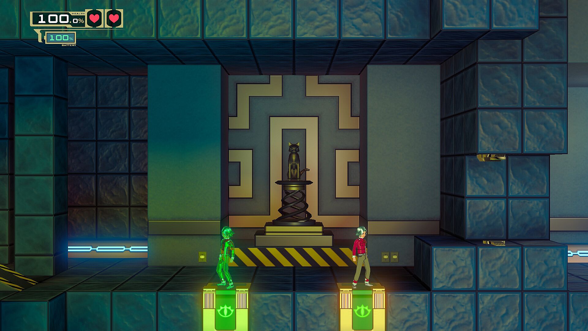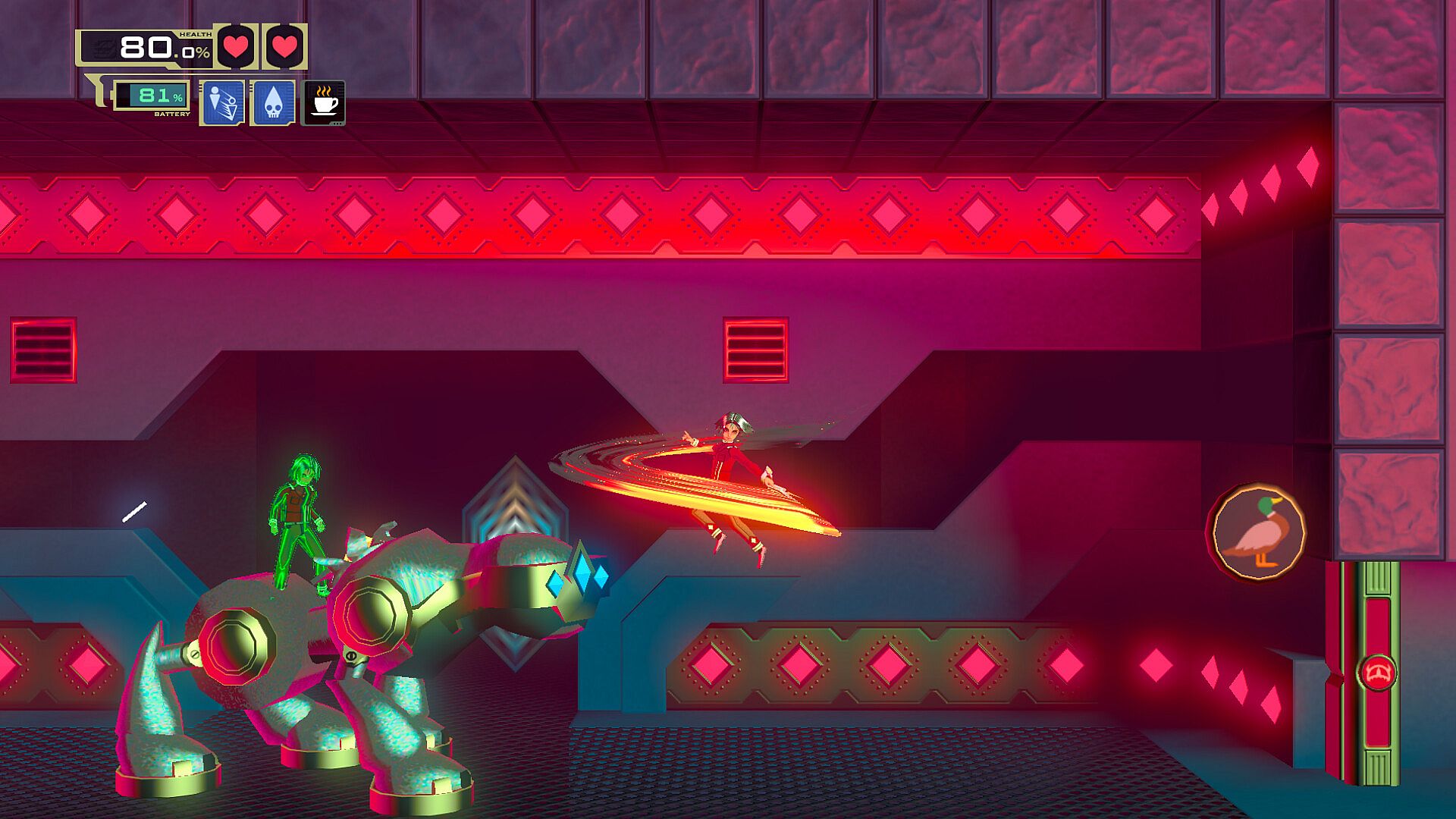 Duplicate your position with a single button and press it again to switch between your two selves at any time, no matter how far. You can use your other self to activate switches, mislead enemies and block projectiles. Sometimes, even tunnel through walls!