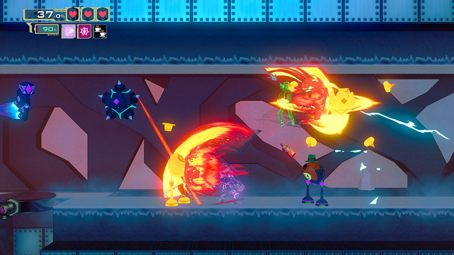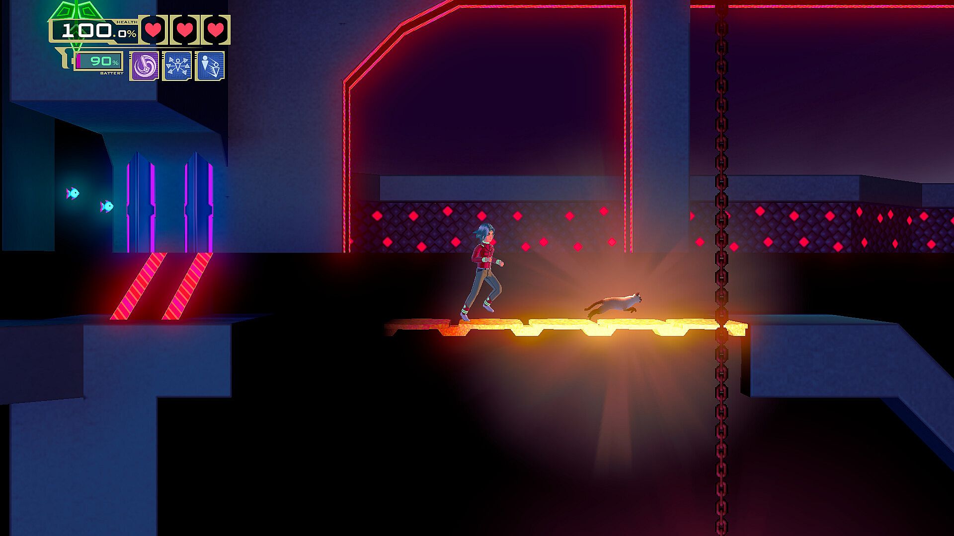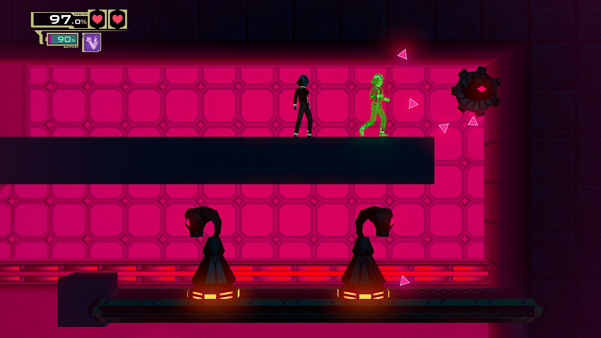 Duplicate your position with a single button and press it again to switch between your two selves at any time, no matter how far. You can use your other self to activate switches, mislead enemies and block projectiles. Sometimes, even tunnel through walls!