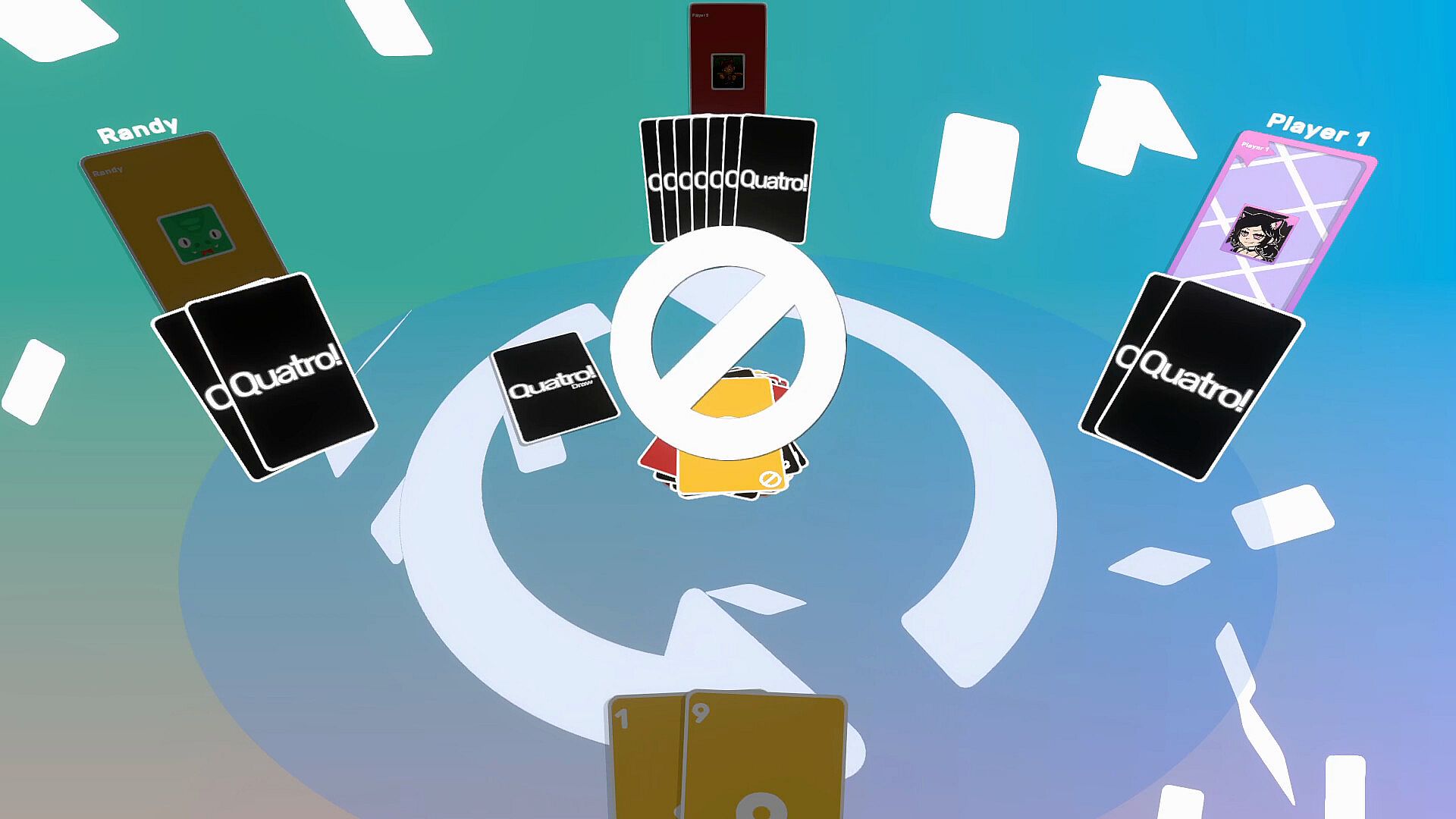 Quatro! dreht sich um einen Hauptmodus mit Card-Matching und Hand-Leerung. Hier messen sich Spieler in Echtzeit-Partien mit Standard- oder modifizierten Decks um den Sieg.