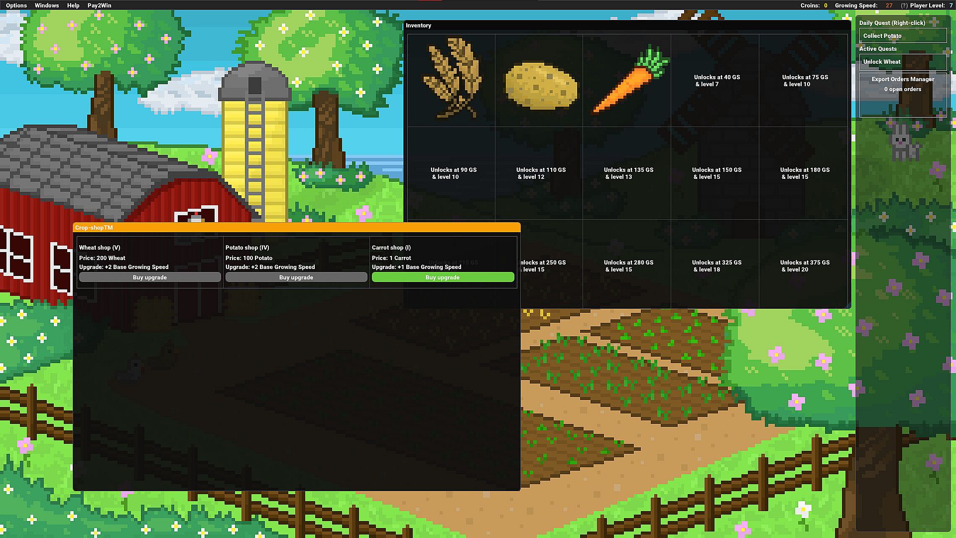 A 2D idle game about farming various crops.