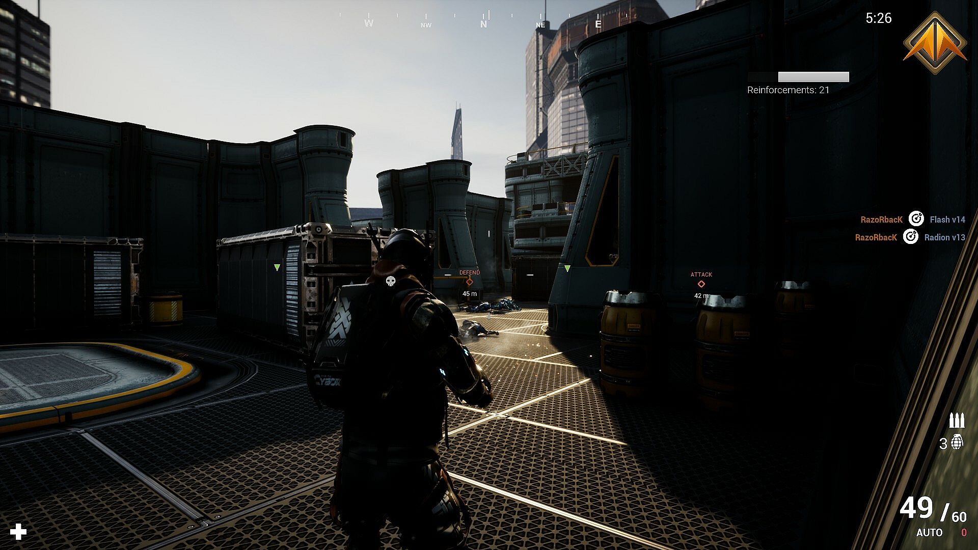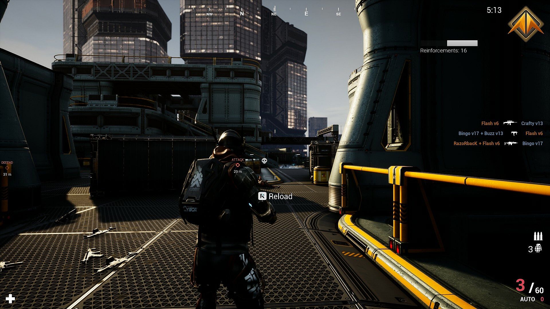 - Gameplay - Global/Team Chat, Sniper Scope, A.I. players (Bots), Hit marker, Kill feed, Melee, Compass, and Class & Perk selection.