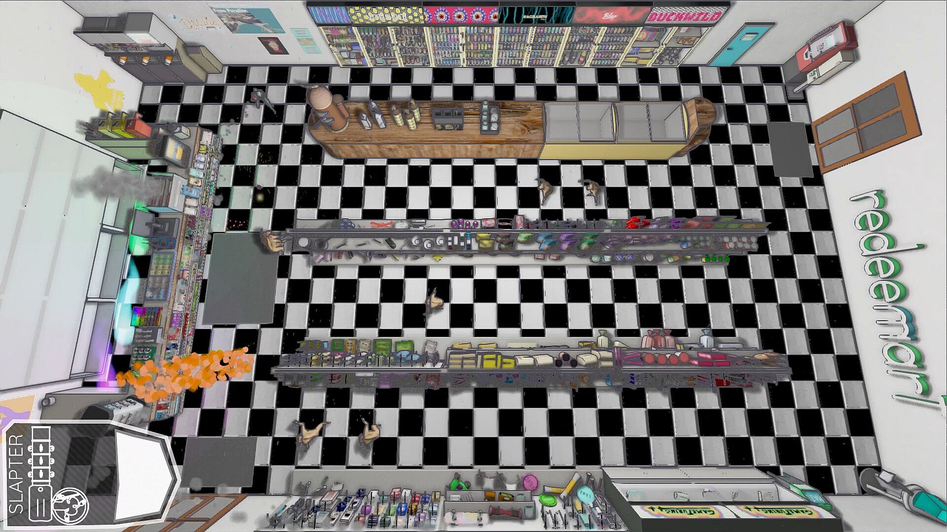 When Jonah walked into the Redeemart convenience store after having his heart broken, he didn't expect to be weathering an apocalypse there. But now he'll have to rely on the other characters in the store and duct-taped together weapons to survive. Step into his shoes and fight through waves of monsters with top-down twin-stick shooter gameplay. Grow stronger with new abilities and upgrades by collecting trading cards. And build new friendships with the people in the store.