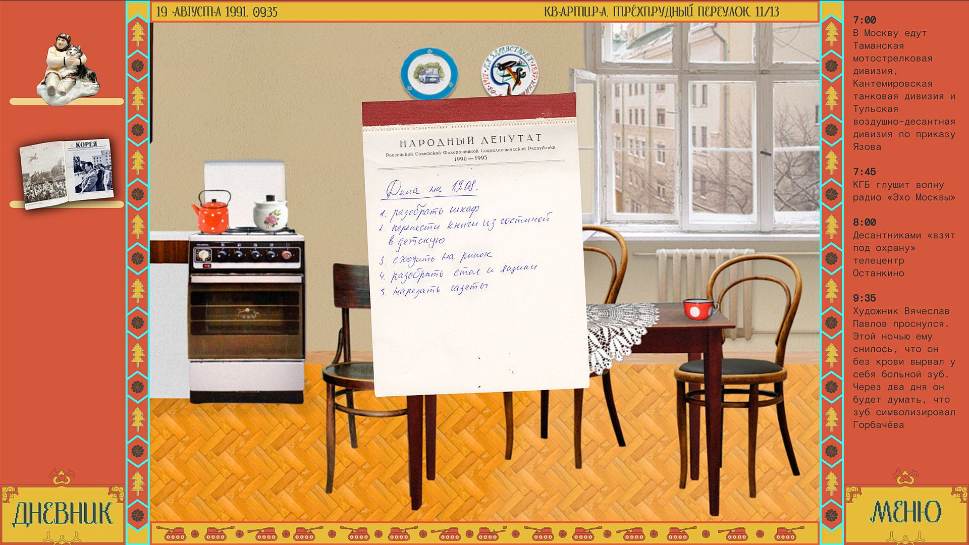- Point-and-click quests with historical backdrops. Try to live in 1991, stand up against the totalitarian coup, and shop for wallpaper.