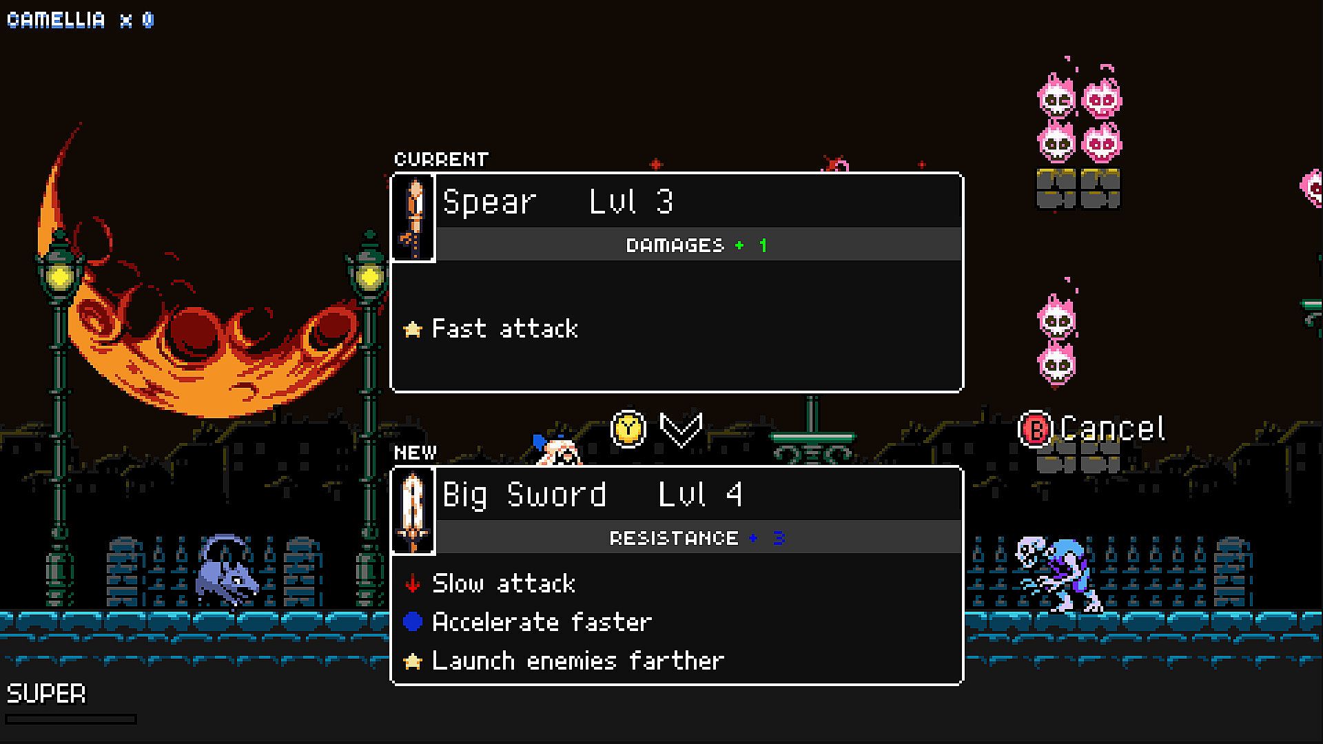 • Pickup new procedurally generated weapons every run. Beware, if you get hit, you lose your weapon, it may never reappear!