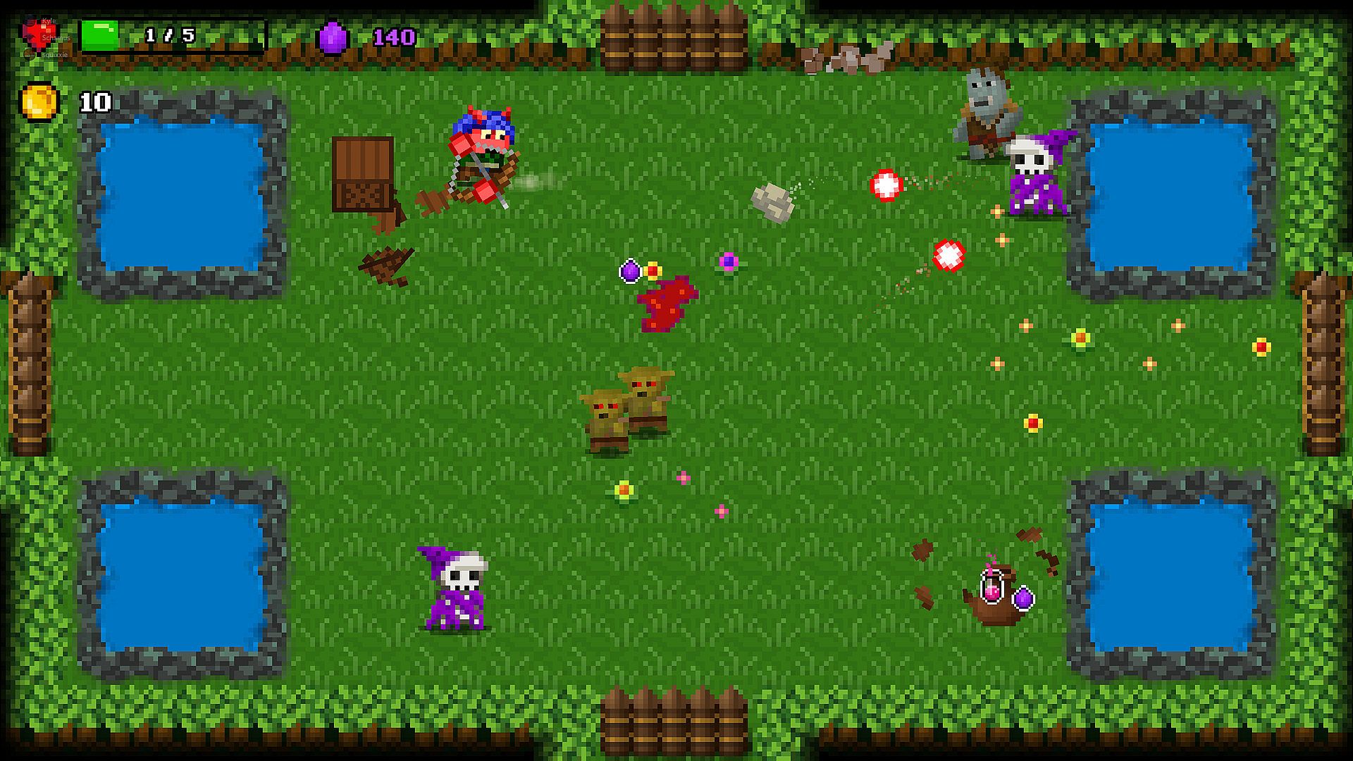 Roguely is a fantasy themed top-down shooter pixel art action roguelite with some bullet hell thrown in. Fight and dodge your way through the randomly generated levels to rescue your friends. Find upgrades along the way and save up arcane fragments for permanent blessings from the gods.
