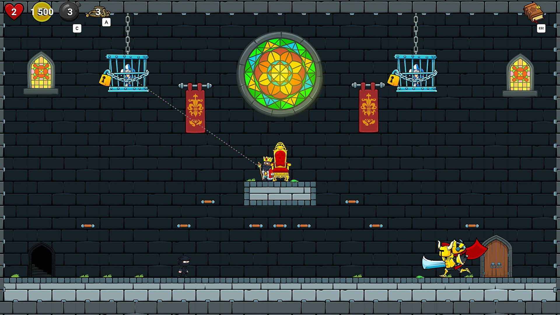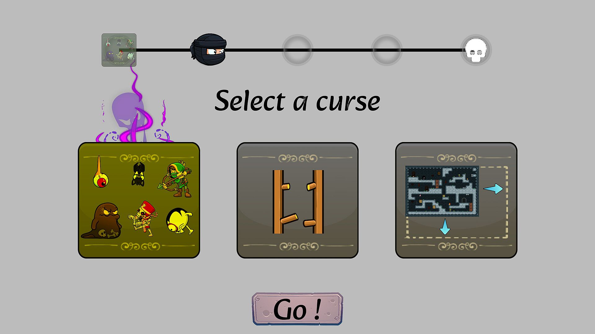 Progress further into the dungeon. Every level finished you must select a curse that will be applied for all next levels.