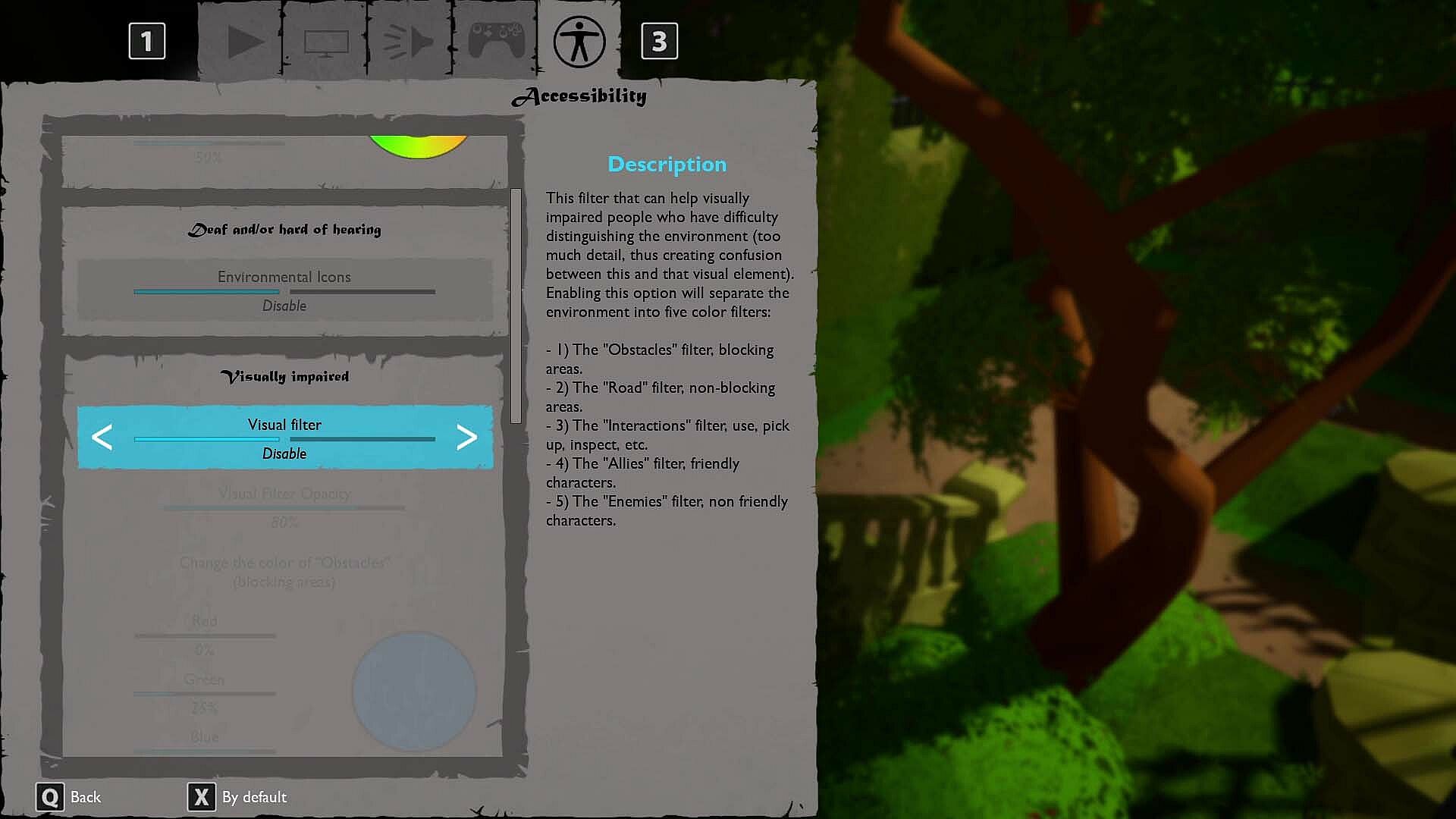 - Accessibility for color blindness (turn on/off and adjust intensity)