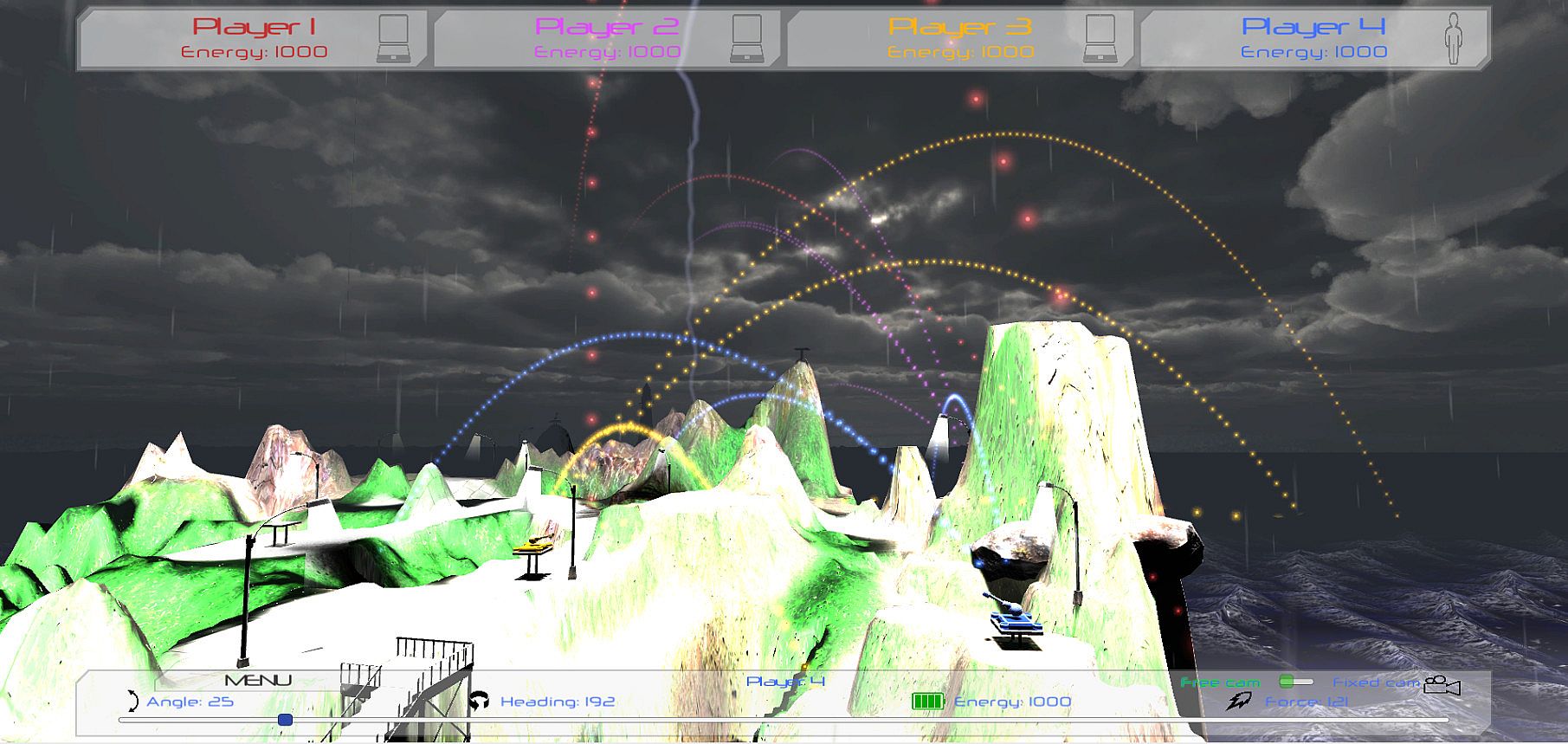 Scorched Islands is a remake of classic turn-based artillery game. Move to one of islands and fight with AI or other players at the keyboard. Set shooting angles and power and destroy enemy tanks.
